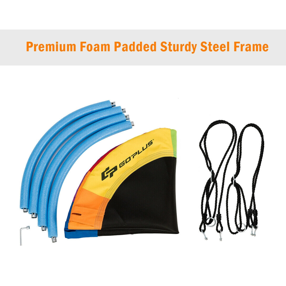 Still agonizing over what to do with your kids on weekends? Why drive far to the park just in order to play a public, old, boring swing when you can really impress your kids and their friends with a full size saucer tree swing just in your backyard? Our brand new flying saucer tree swing will bring much pleasure to your family! Made with a sturdy steel frame, heavy-duty 600D oxford fabric and high density PP jump cloth for best gaming experience. It is built to withstand about 300kg of static weight and is large and heavy-duty enough for 2-3 children (1 adult +1 child) to play together. It can be easily connected to trees or an existing swing set or any common types of mount kit(not included). This pleasing appearance and practical application will definitely satisfy your needs. It is easy to install and storage in few minutes. Take it with you camping or to your friends backyard to share the fun! It will be the best gift to your children for outdoor entertainment, suitable for them to play or rest. If you are looking for one, don't hesitate to buy it now! Bullet Point: Safe Material and Large Capacity: Considering the most important issue of safety, the tree swing is made of waterproof, UV-proof and wear-resistant 600D oxford fabric and high density PP cloth which have long service life and is more solid, tougher, softer than many other normal swings/net swings. The sturdy hot-dip galvanized steel frame makes it more safe and durable. With a strong load-bearing capacity, our swing can handle multiple children at the same time. Adjustable Height to Meet Your Needs: The rope can be adjusted as you like in the range from 102 to 160 cm. You may adjust the height and choose the most appropriate one for your children to relax as the condition changes. There are high-quality braided ropes which adopted special braiding method which is very firm. Also it has fine workmanship, high load-bearing to ensures your stability when you use it. Multiple Functions for Various Situations: This kind of tree swing can be used for many purposes, such as sitting, reading, sleeping, and playing. It will supply so much fun to both children and parents! It can be used in many places, such as in the backyard, park, on trees, swing sets and etc. Unique Fashion Design: The giant flying saucer tree swing is popular among children and adults! This swing is composed of red, orange, yellow, green, blue and purple. Colorful design can stimulate visual nerve and attract kids' attention. It brings user a pleasant and relaxed mood. Easy Assembly and Installation: If it's complicated to put together and take apart a swing, it cannot be called as a good one. Rather, our swing was designed with simplicity. It’s universal and versatile design allows for quick and painless installation. Just a take a moment to hang it from a large tree branch or attach it to a swing set. Features: Provides a fun hang out space for kids to safely spin or swing into action during playtime Easy to set up and storage can be hung from an existing swing set or by two ropes in a Tree 600D oxford fabric and steel construction ensure great load-bearing capacity Long life with anti-aging feature, soft, ductile and wearable Large enough for multiple children to swing and play together Adjustable heights to satisfy various needs Perfect lounging space to play, read, listen to music, daydream, relax Resilient and resistant to all types of weather Specifications: Color: Red + Orange + Yellow + Green + Blue + Purple Material: PP cloth + 600D oxford fabric + hot-dip galvanized steel Adjustable height: 102 ~ 160 cm Diameter: 102 cm Net weight: 2.7 KG Max capacity: 300 KG (Static) Package Includes: 1 x Flying saucer tree swing 1 x User guide
