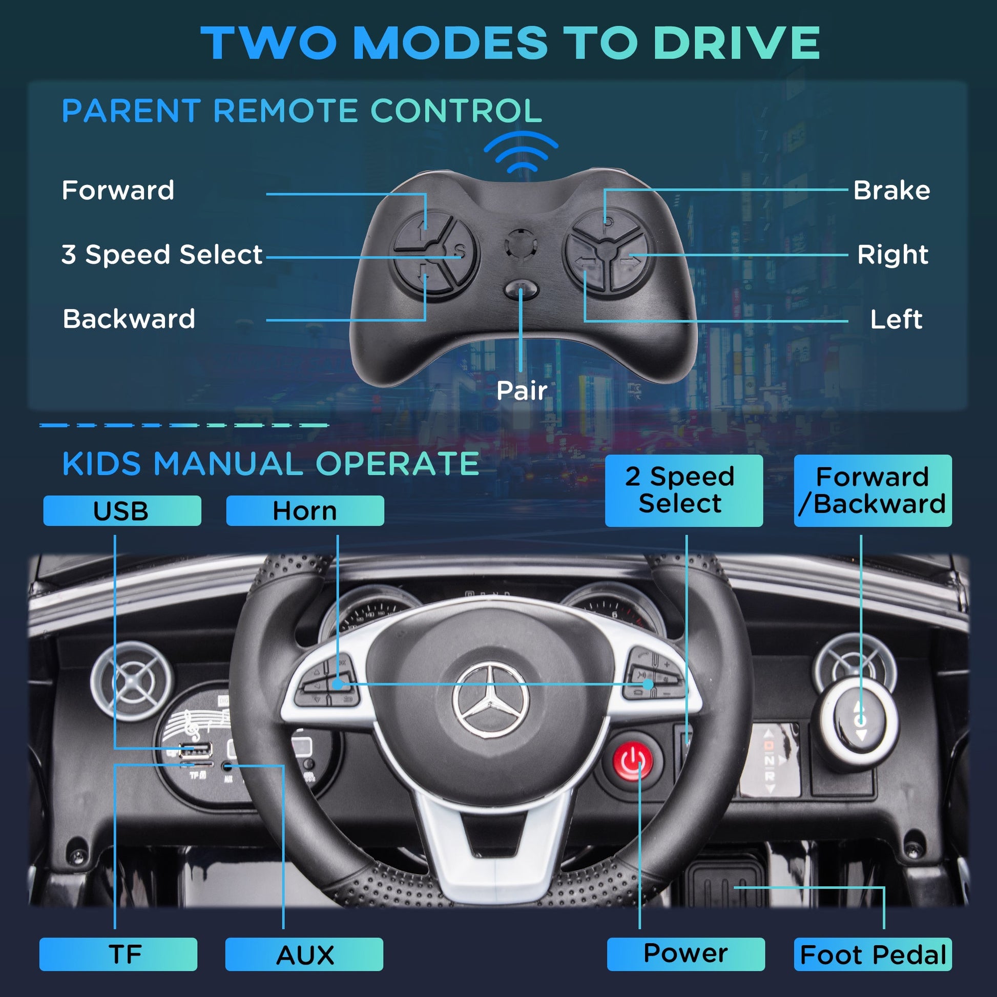 HOMCOM Benz SLC 300 Licensed 12V Kids Electric Ride On, with Music, Remote Control, LED Headlights, Horn, Black