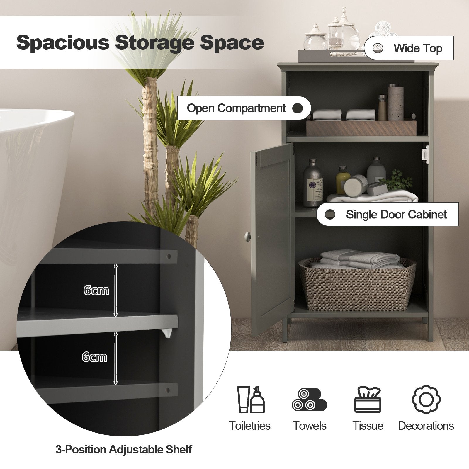 Bathroom Floor Single Door Side Cabinet with Open Compartment-Grey