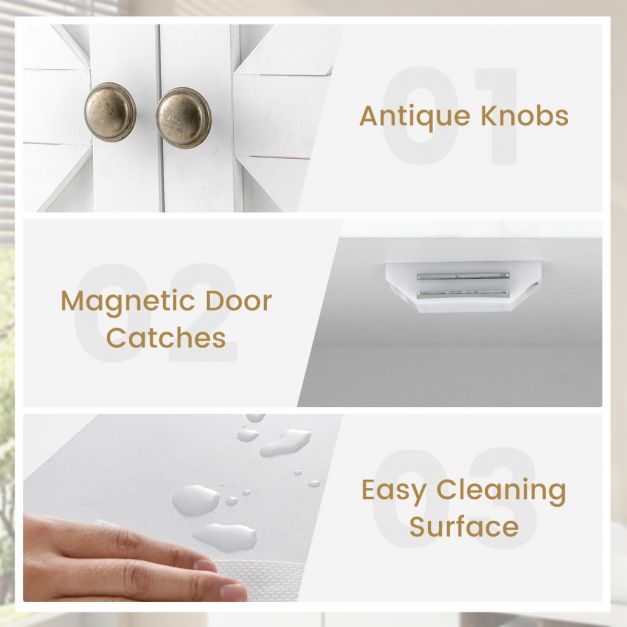 Bathroom Wall Cabinet with Double Doors & Open Shelf & Towel Rack-White