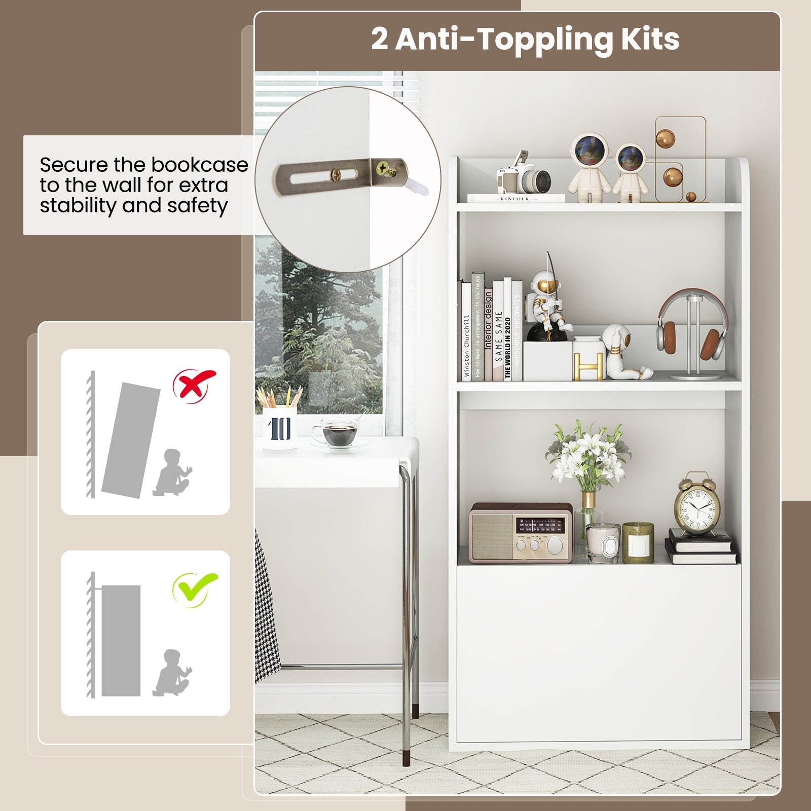 The bookcase offers large storage capacity and divided shelves to make the most of the living space. Each shelf offers enough space for a variety of items and improves the organization of your room. With a pull-out drawer at the bottom, this shelf offers hidden storage space. The 2 anti-tip kits make this shelf additionally secure and guarantee stability. The shelf also impresses with its practicality and attractive design. Attributes : Easy Organization : The bookcase features 3 open shelves that provide ample space to store and display books, plants or decorative items. Additionally, the pull-out drawer provides discreet storage for personal items. Sturdy Construction : Made of thickened wood, this shelf offers a stable structure that ensures long-lasting durability. It is a reliable storage solution with a total load capacity of 75 kg. No wobbling or swaying : Safety is paramount in the design of this office shelving unit. Two tip-over protection kits anchor the shelving unit securely to the wall and prevent accidents, especially in homes with children and pets. Timeless design : With its exquisite wood grain and elegant lines, this storage rack with drawer complements different interior styles. Perfect for your living room, study, kitchen or office, it offers a practical storage solution. Thoughtful Details : The edge protection design of the wooden shelf ensures that your items do not slip off the shelves. In addition, the smooth metal rails allow you to open and close the drawer effortlessly. Characteristics : 3 open shelves for easy access to everyday items With a large drawer for hidden storage for smaller items High-quality materials combine robustness and durability Stylish design complements the look of your home Ideal for living room, study, kitchen or office Reinforced side guards prevent objects from falling Metal rails for easy extension and retraction of the drawer