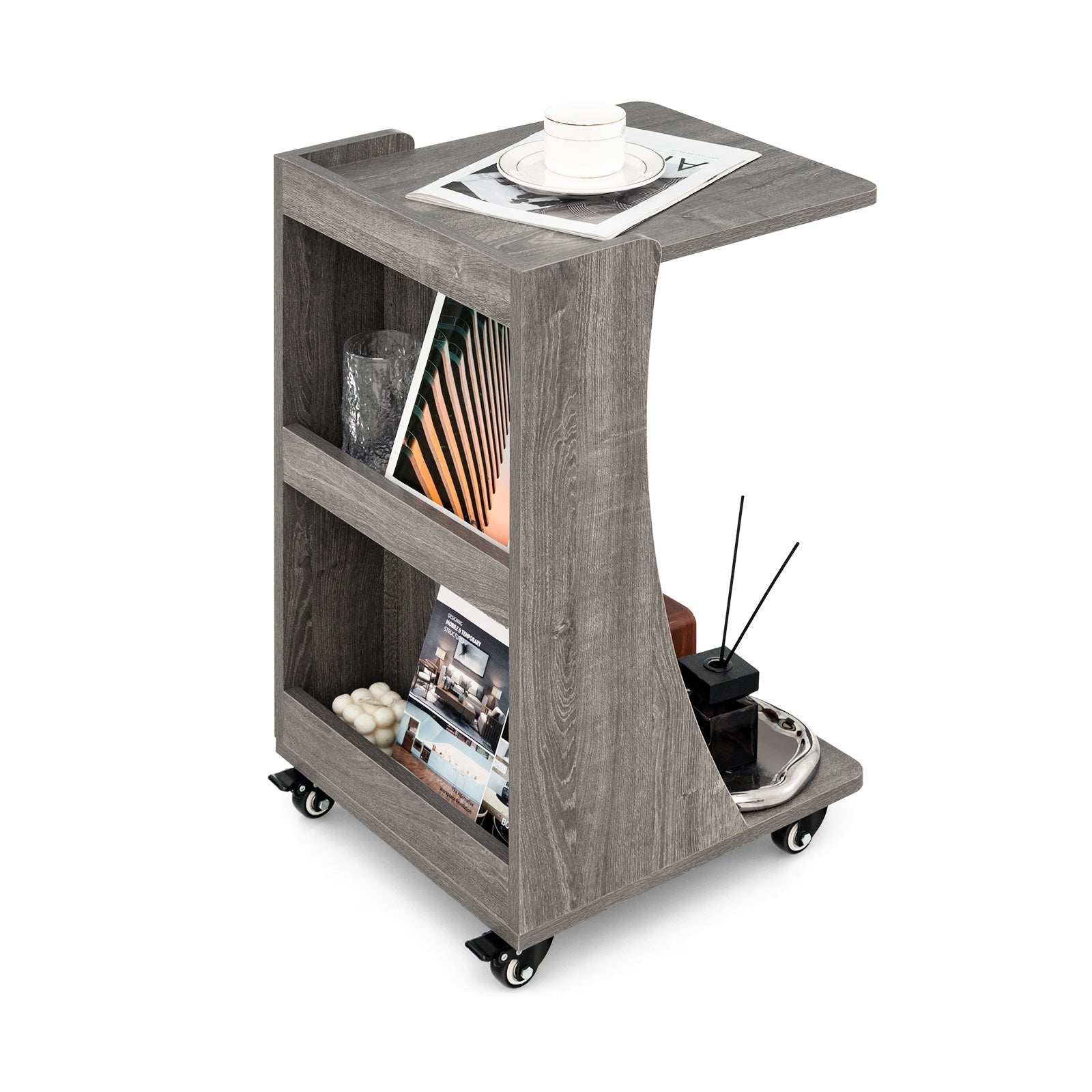C-Shaped Side Table with Storage Shelf for Bedroom and Living Room-Grey
