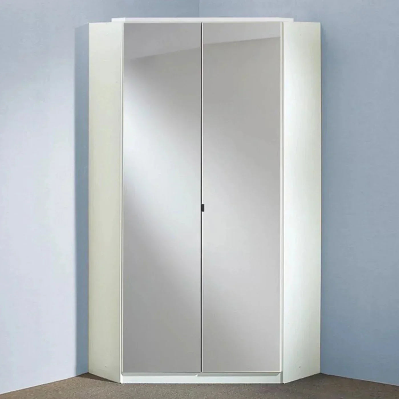The CALLISTO 2 Door Mirrored corner wardrobe has a sleek and contemporary look, finished with Mirror. The wardrobe has trendy long handles along with the 2 centre doors being mirrored which gives the wardrobe a pleasant modern look