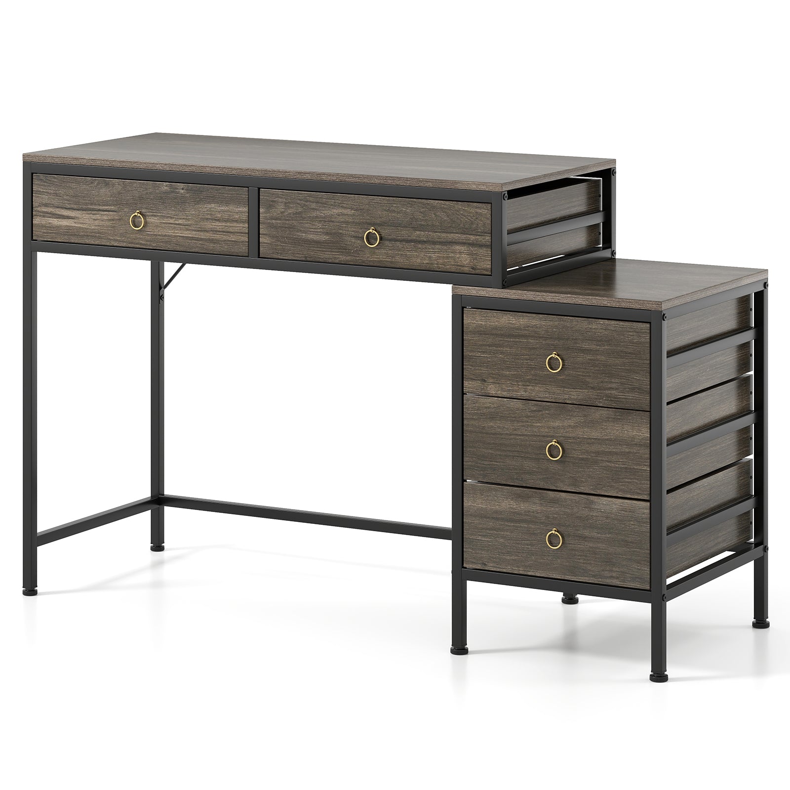Computer Desk with 5 Drawers and Side File Cabinet-Grey
