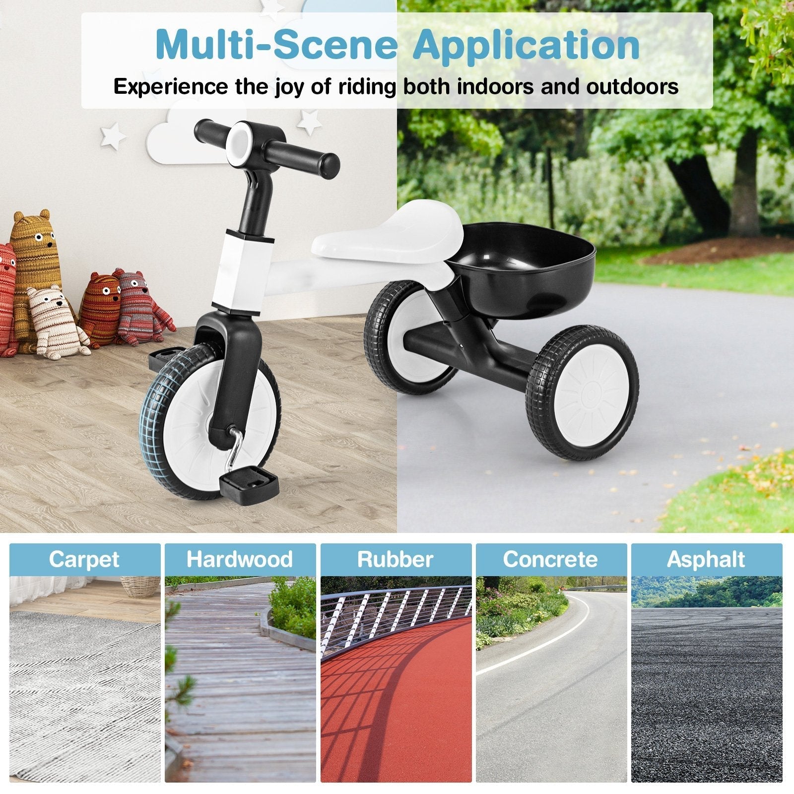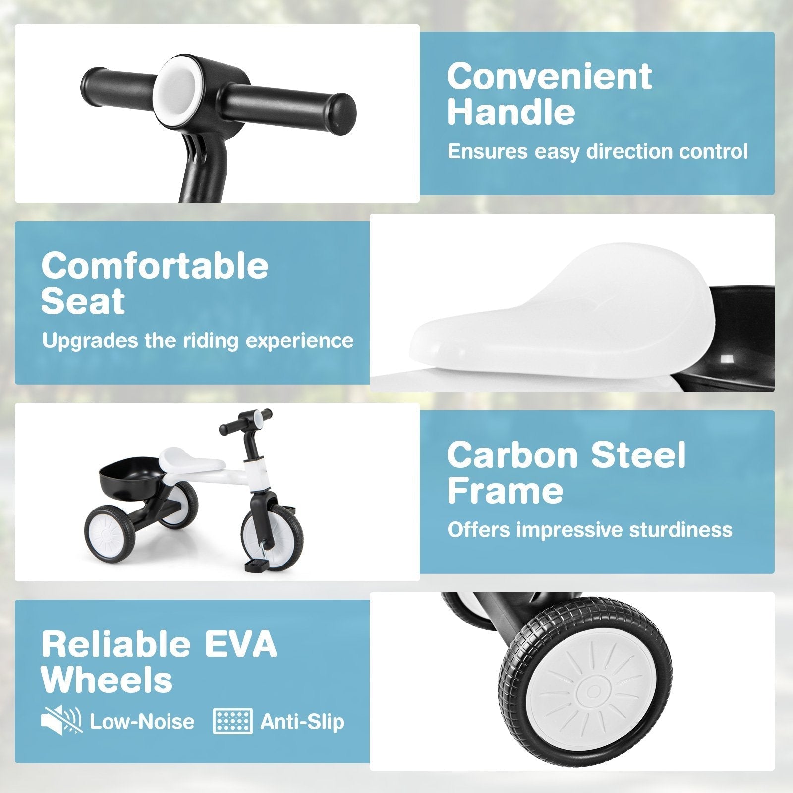 Convertible Kids Tricycle Toddler Trike with 86° Limited Steering Angle-White