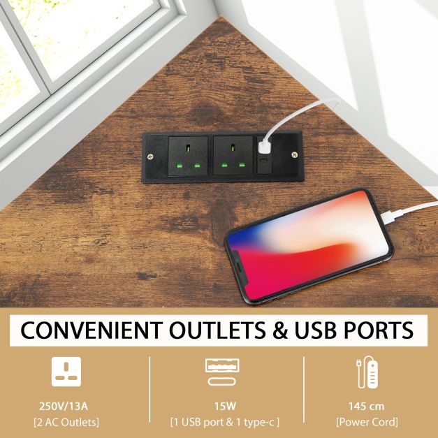 Corner Desk 90-degree Triangle Computer Desk with Power Outlet-Rustic Brown