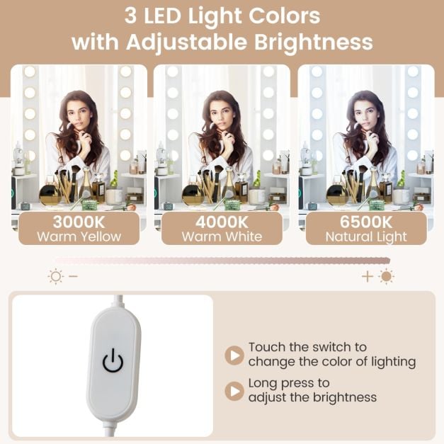 Corner Makeup Vanity Desk with Lighted Mirror Power Outlets-White