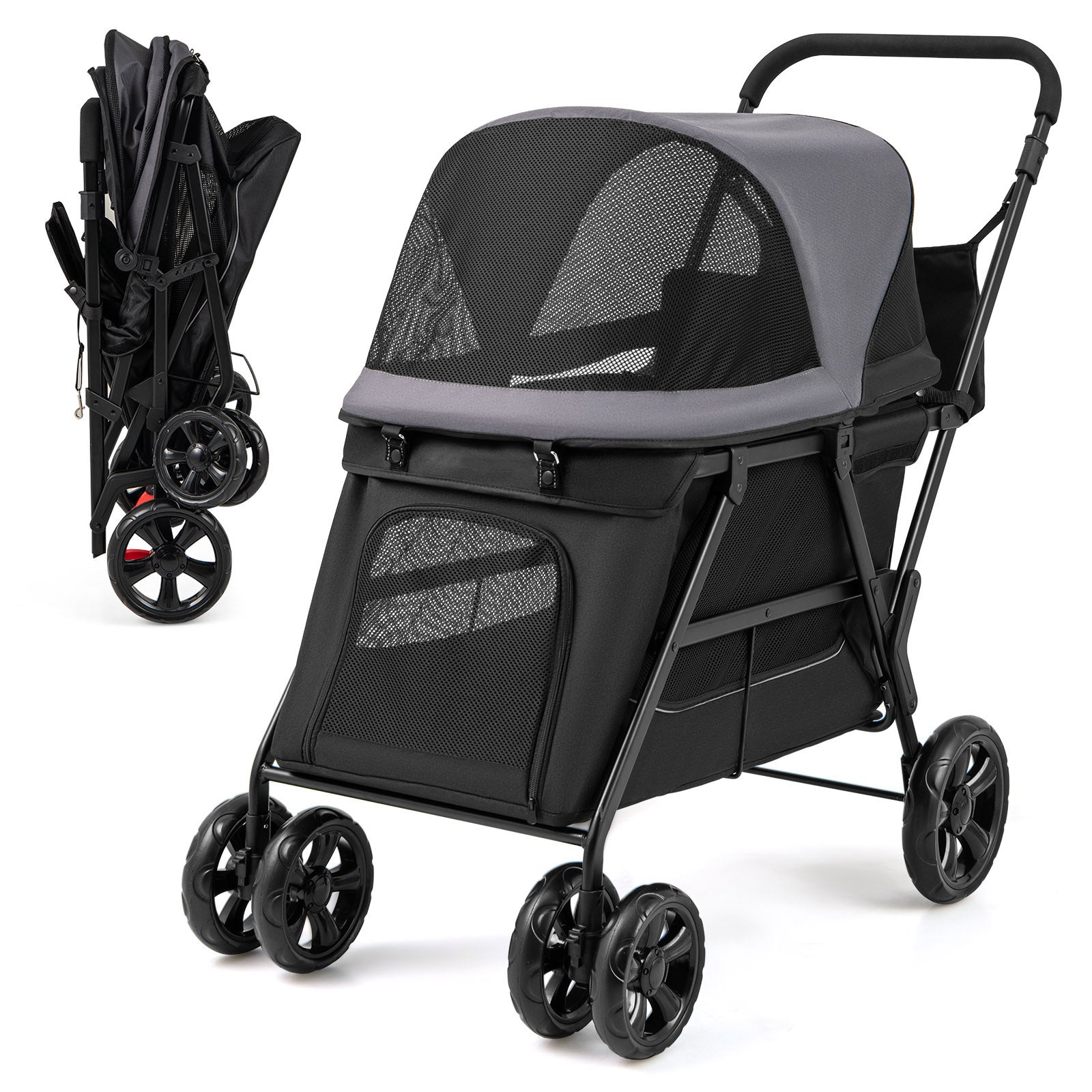 Dog Stroller Wagon with Dual Entry for Medium Small Senior Elderly Dogs-Black & Grey