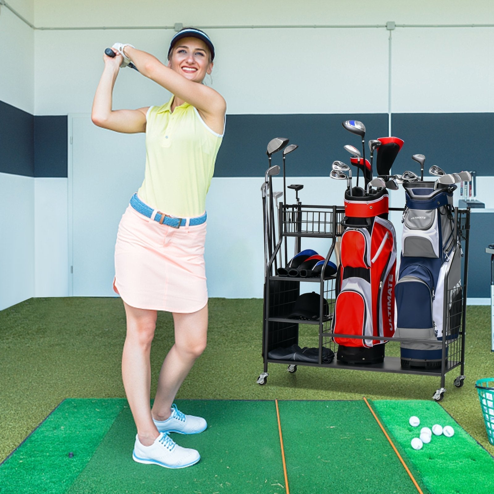 Double Golf Bag Storage Rack for Garage with Lockable Universal Wheels