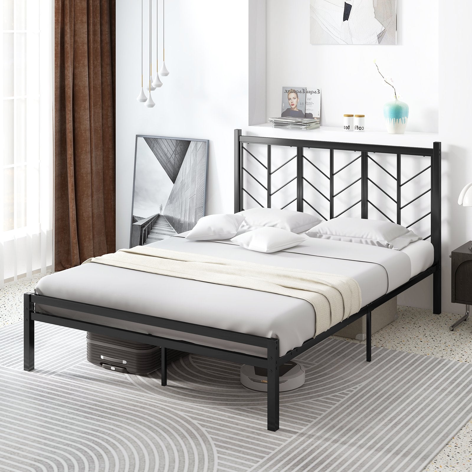 Transform your bedroom into a sanctuary of style and sophistication with this exquisite double/king-size bed frame. Crafted with 11 sturdy metal slats and strong legs, this frame ensures ultimate stability and durability. The elegant branch-shaped headboard is designed for a unique touch of class, bringing an atmosphere of sophistication and elegance to your home. Utilize the generous 29cm under-bed storage space to keep your room clutter-free and organized. Unlike mattress on other bed that is easy to slide, the mattress on the bed is in non-slip recessed design, no sliding anymore. Elevate your living space with this modern and functional bed frame that seamlessly combines aesthetics and practicality. Reliable Structure: The bed frame is constructed with 11 sturdy metal slats, allowing you to use the product without a box spring. In addition, the platform bed is supported by 9 strong legs to ensure a reliable structure, allowing you to experience the ultimate in stability. Elegant Branch-shaped Headboard: Add a touch of sophistication to your bedroom decor with the unique branch-shaped headboard design, creating a focal point that exudes style and elegance. Elevate the aesthetic appeal of your room with this one-of-a-kind feature. Spacious Under-bed Storage: Make the most of the 29cm large under-bed storage space, ideal for storing extra linens, blankets, or seasonal items. Keep your bedroom organized and clutter-free with this practical storage solution. Considered Details: Headboard and footboard stop the mattress from sliding around, while the firm connections prevent any unwanted shaking. Non-slip foot pads provide extra security and keep your bed in place at all times. More, there are anti-collision foam pads on the slats, providing a quiet sleeping environment. Detailed Instruction: A matching instruction manual and all necessary accessories are included to help you complete the installation quickly. This modern design bed frame combines fashion and function to give your living space a new look.