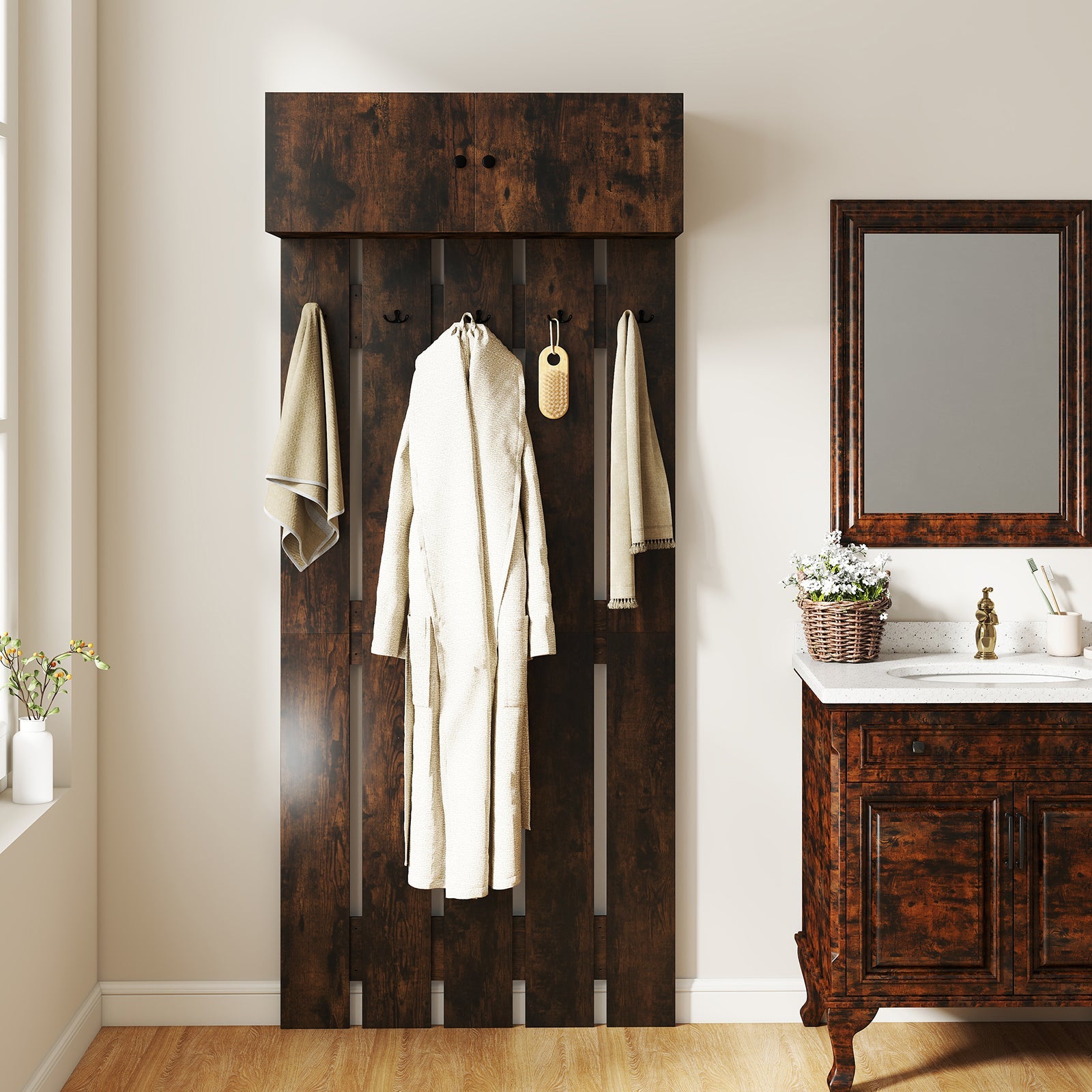 Entryway Wall Mounted Coat Rack Coat Rack with 5 Double Hooks and 2-Door Cabinet-Coffee