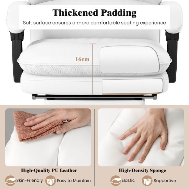 Ergonomic Office Chair PU Leather Adjustable Swivel with Reclining Backrest-White
