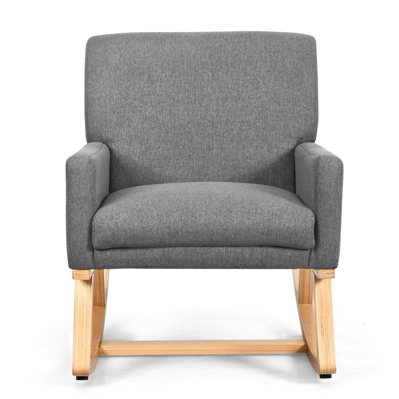 This rocking chair will offer you extra comfort and new sitting experience. Do not hesitate to buy it now! Comfortable Rocking Experience: Equipped with two loop rocker feet that connected with one horizontal wooden bar, this rocking chair will give you comfort and safety sitting experience. There are four protective pads at the base bottom to prevent the floor from being scratched while the chair is rocking. Sturdy & Durable Construction: The entire frame is made of solid wood which is sturdy enough to support up to 120kg and durable for long time use. Covered with high-quality fabric and filled with high-density and soft sponges, this chair provides you with a comfortable and soft sitting experience. High Backrest and Cozy Armrest: This ergonomic chair can give you strong support for your whole body. Wide and high backrest provides you with great comfort and when you lean on it or rock it. What's more, padded armrest compared with other wood armrest is more comfortable and ergonomic. Thickly Padded Seat Cushion: Designed with a thick cushion and high-density sponge inside, the whole recreational rocking chair is soft enough for you to enjoy yourself and relax your body after tiring work. Its fabric slipcover is wear-resistant and skin-friendly. Simple Assembly and Maintenance: Provide with detailed instruction, the leisure chair can be installed in a short time. Because of its smooth surface, this chair is easy to maintain and clean.