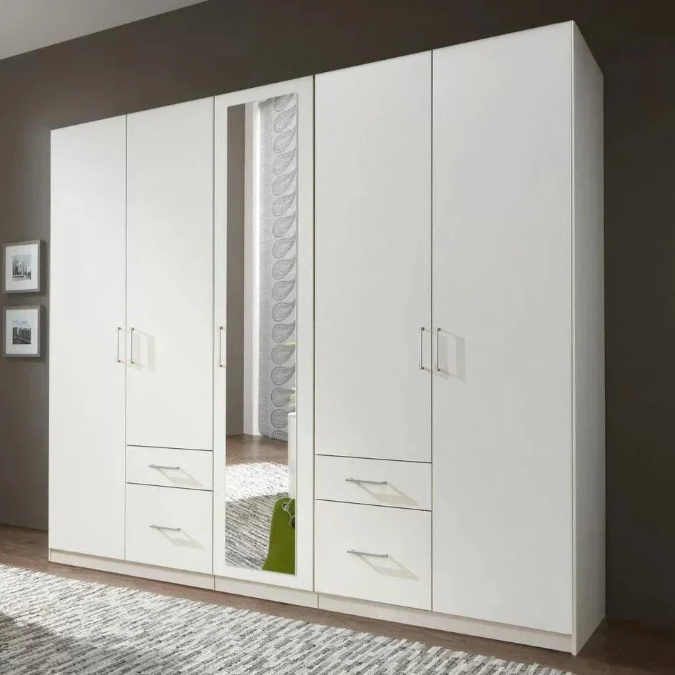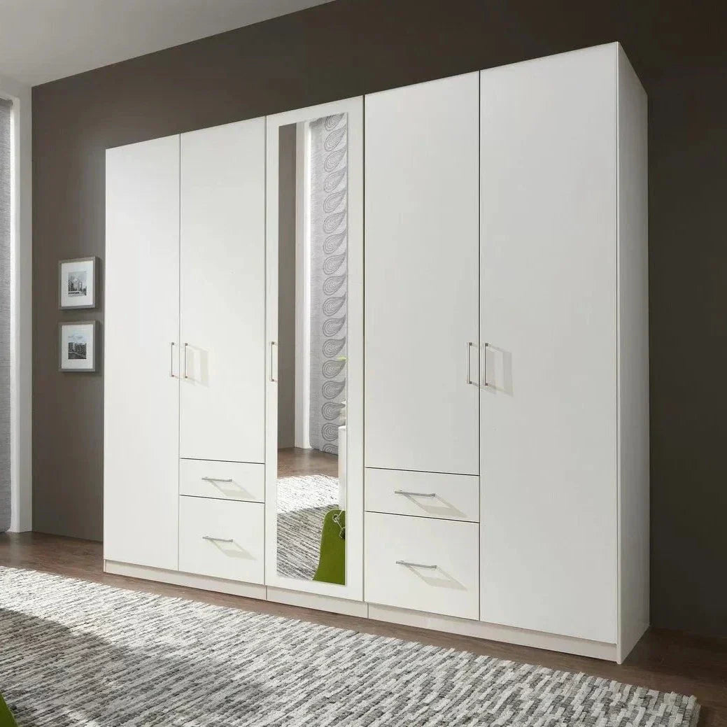 FLOCK 5 Door Mirrored Wardrobe White 225cm