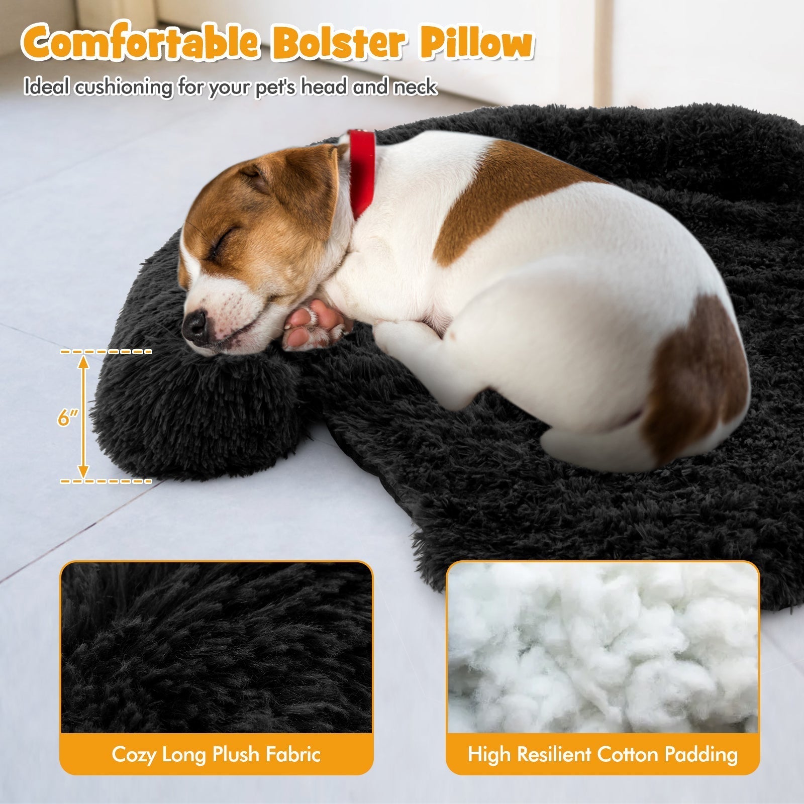 This plush calming dog bed will be a warm gift for your beloved dog!Made of soft long plush fabric and high-resilient cotton padding, this dog sofa bed is designed to provide the utmost comfort for your furry friend. The raised neck bolster of the dog bed helps to reduce anxiety and increase security. What's more, this plush pet bed can keep your furniture away from scratches, dirt and hair. The waterproof bottom lining with anti-skid dots can secure the pet bed to sofa or other furniture. Cleaning is a breeze, since the zippered outer cover can be removed off and machine-washed. Besides, the back of the dog bed features a handle for easy transportation, ensuring your dog has a comfortable space everywhere you go. Next-level Comfort: Equipped with soft and pet-friendly long plush fabric and thick and resilient cotton filling, this dog bed offers your dog a cozy sleeping or resting spot. Plus, the 18cm raised edge design provides extra comfort and support for your dog's head and neck. Furniture Protector: The plush pet bed can work as a barrier between your pet and your furniture like sofa or bed, protecting your furniture from damage and smudge. Besides, this dog bed can also be used on the floor or in the car.Dual Anti-slip Design: Featuring a non-slip bottom, the dog mat bed is not easy to slip off the couch or shift on smooth floors. Apart from that, the dog bed comes with a carrying handle that can be tucked into the cracks of the sofa to prevent sliding. Removable and Washable Cover: Thanks to the convenient and smooth zipper, the outer cover of the dog sofa bed can be easily detached. What's more, the cover is machine washable, which greatly saves energy and time. Multiple Sizes Available: There are 3 different sizes of pet sofa bed for you to choose from.