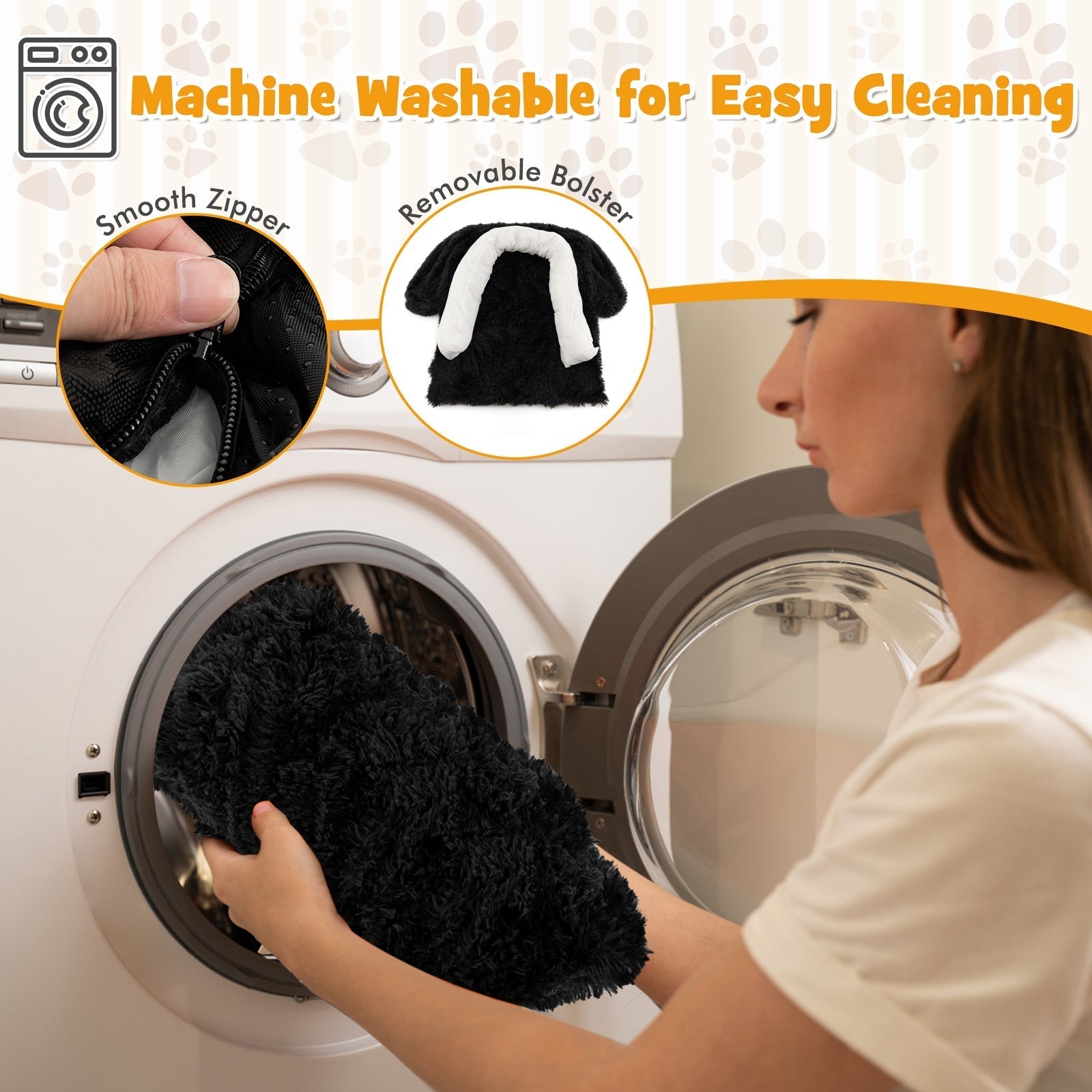 Fluffy Dog Mat Couch Cover Protector with Detachable Washable Cover and Anti-slip Bottom-Black-S