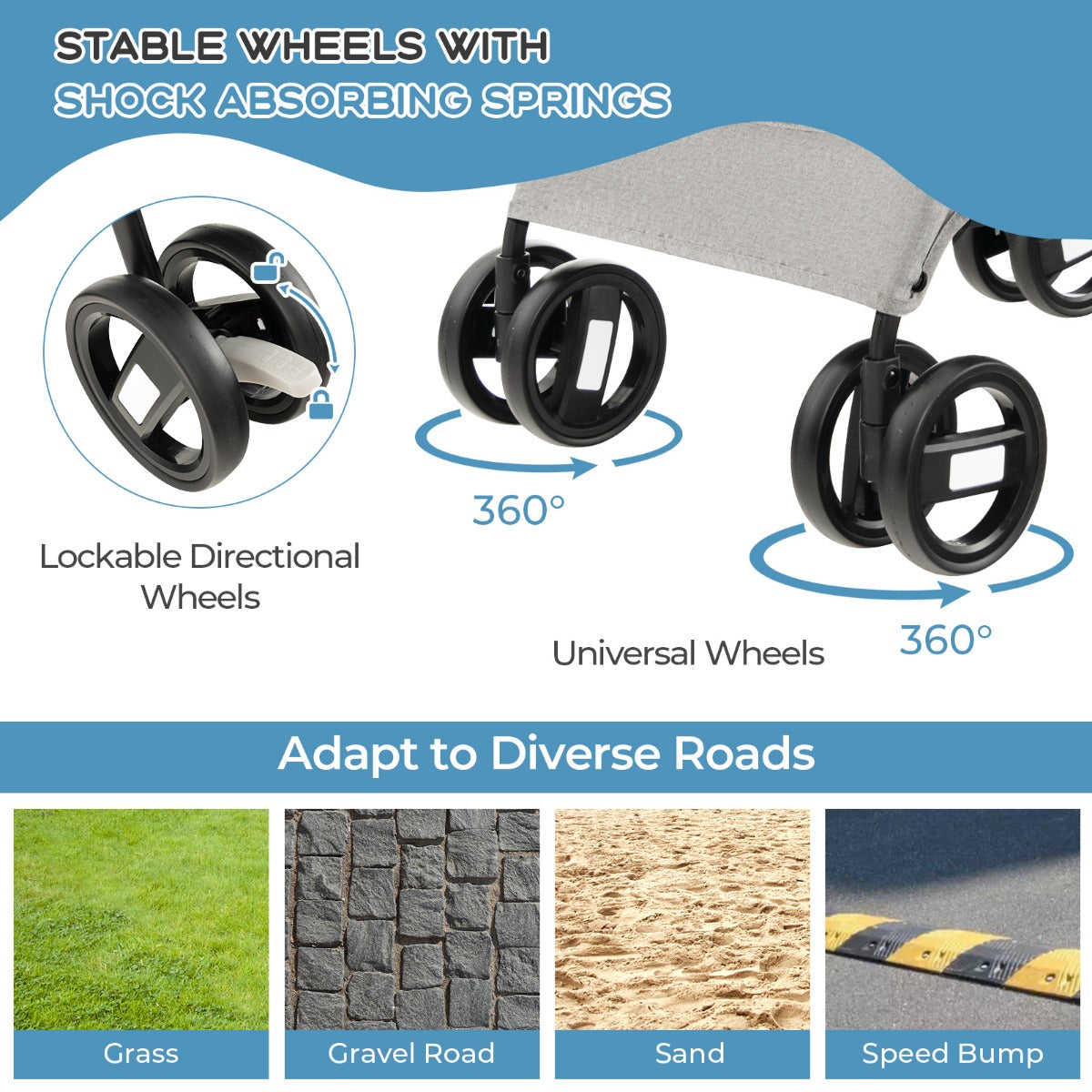 Foldable Pet Stroller with 4-Level Adjustable Canopy and Storage Basket-Blue