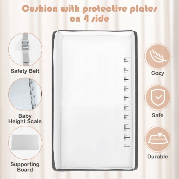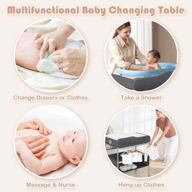 Folding Nursery Changing Table with Lockable Wheels and Storage Basket-Grey