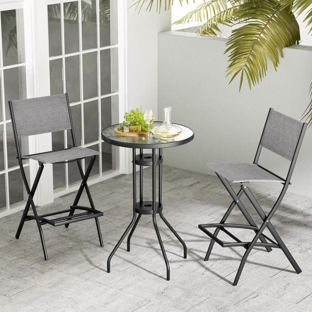 Folding Outdoor Bar Chair Set of 4 with Metal Frame and Footrest-Grey