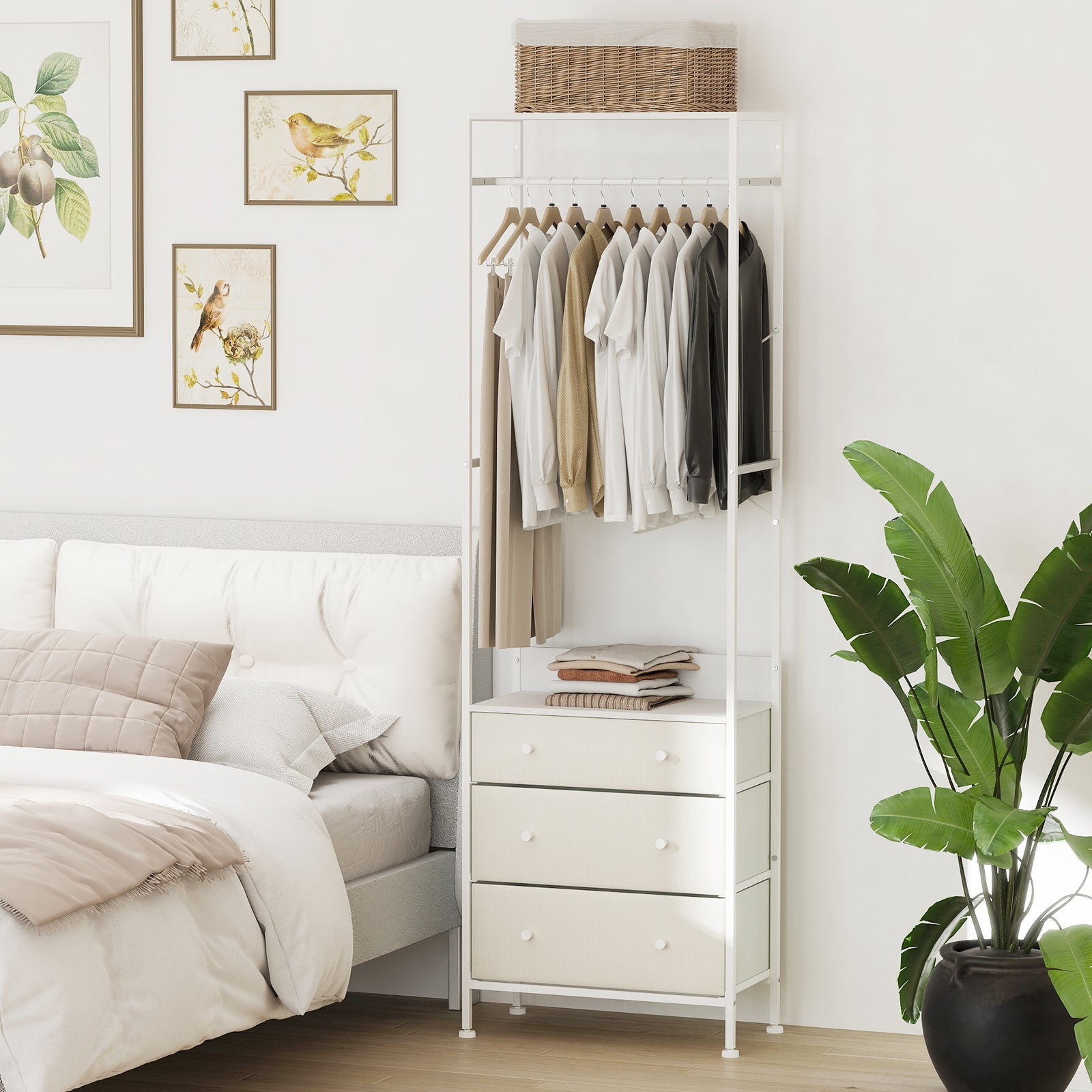 Freestanding Closet Organizer Clothes Rack with Drawers-White