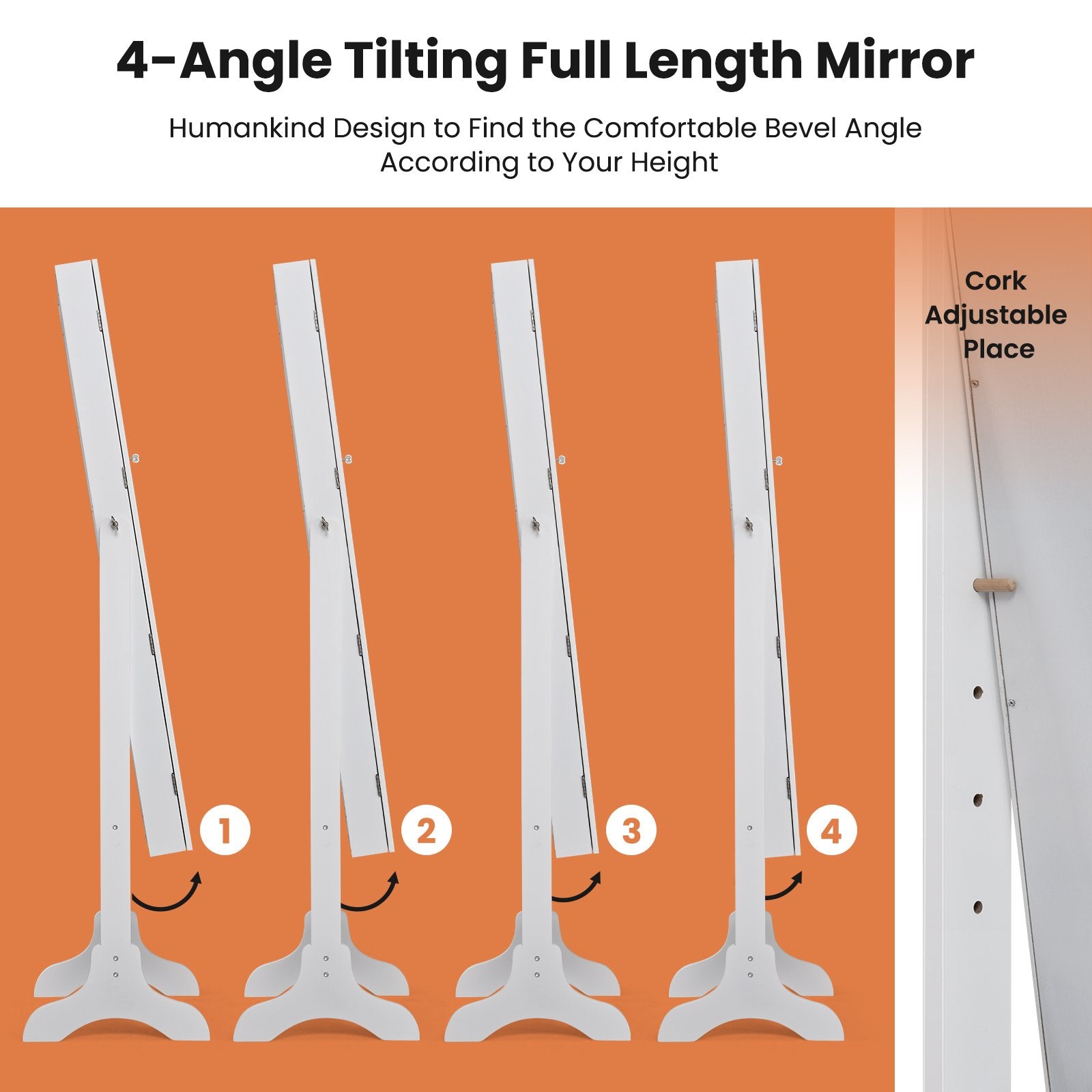 Freestanding Jewelry Cabinet with Full-Length Mirror and Drawers-White