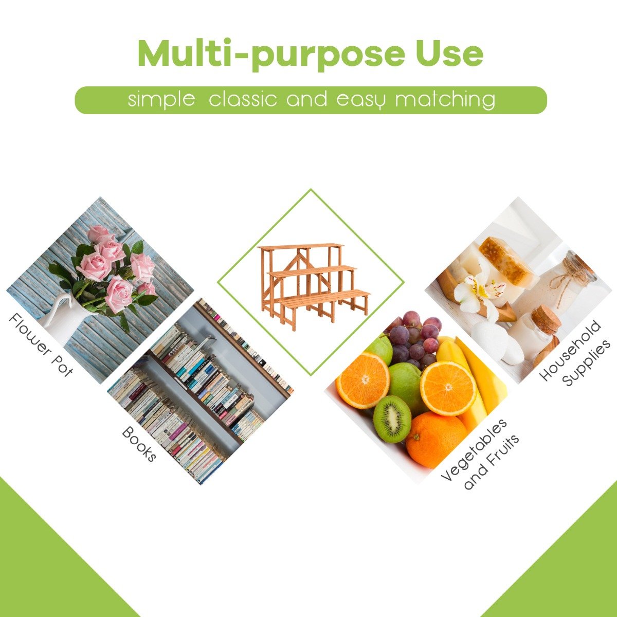 This 3-tier indoor and outdoor plant stand can turn your beautiful garden into a natural plant paradise full of rich sense. Made of solid and durable fir wood, this plant stand is stable and durable enough to hold a variety of bonsai pots and bear weight up to 20lbs, even can withstand strong winds and light rain. In daily life, this garden flower pot holder will brings you and your lovely plants close to the natural feeling. This display stand features 3-tier ladder step shelf, making it perfect for displaying outdoor patio items such as plants and gnomes, but it can also serve as a functional indoor storage shelf as well. You can fully show your plants very well, and let your lovely plants enjoying the sunshine in a comfortable environment. Give this as a charming and useful gift for weddings and other events, or keep it in your own household to bring an elaborate modern style to your decorations. Buy one to display your favorite plants! 【Quality Material and Sturdy Construction】Selected from high quality fir wood, which features strong practicability and good elasticity, this flower rack is durable and solid. Additionally, the connected parts are fixed with metal screws, offering extra stability and durability. Each pot can hold weight up to 22 lbs. 【Space-saving 3-tier Stand】High and low level racks can allows all your lovely plants to grow up with sunshine. The 3 tier stair-step design gives you more convenience and choice of store and display various plants such as lush greenery, potted succulents and so on. Yet only occupies small floor space. 【Multipurpose Wooden Rack】The multi-purpose decorative flower stand is not only a free standing flower rack, but also a storage rack in living room, kitchen, balcony, garage, garden, patio, porch and flower shop for storage of toiletries, towels, sundries, decorations, clothes, artworks, shoes, books and small appliances. 【Stylish and Compact Design】The simple appearance and compact design complements most plants. It features a beautiful grain texture of fir wood for enhancing its overall natural and aesthetic appeal. It is exactly the right combination for your plants pot, making a harmonious match with your indoor and outdoor living area. 【Easy to Assemble and Clean】The days of spending hours assembling furniture are gone; comes with high quality hardware and clear user instructions, you can have this flower rack ready in a short time. What’s more, the smooth water painted surface makes your cleaning work a breeze, saving much time and effort.