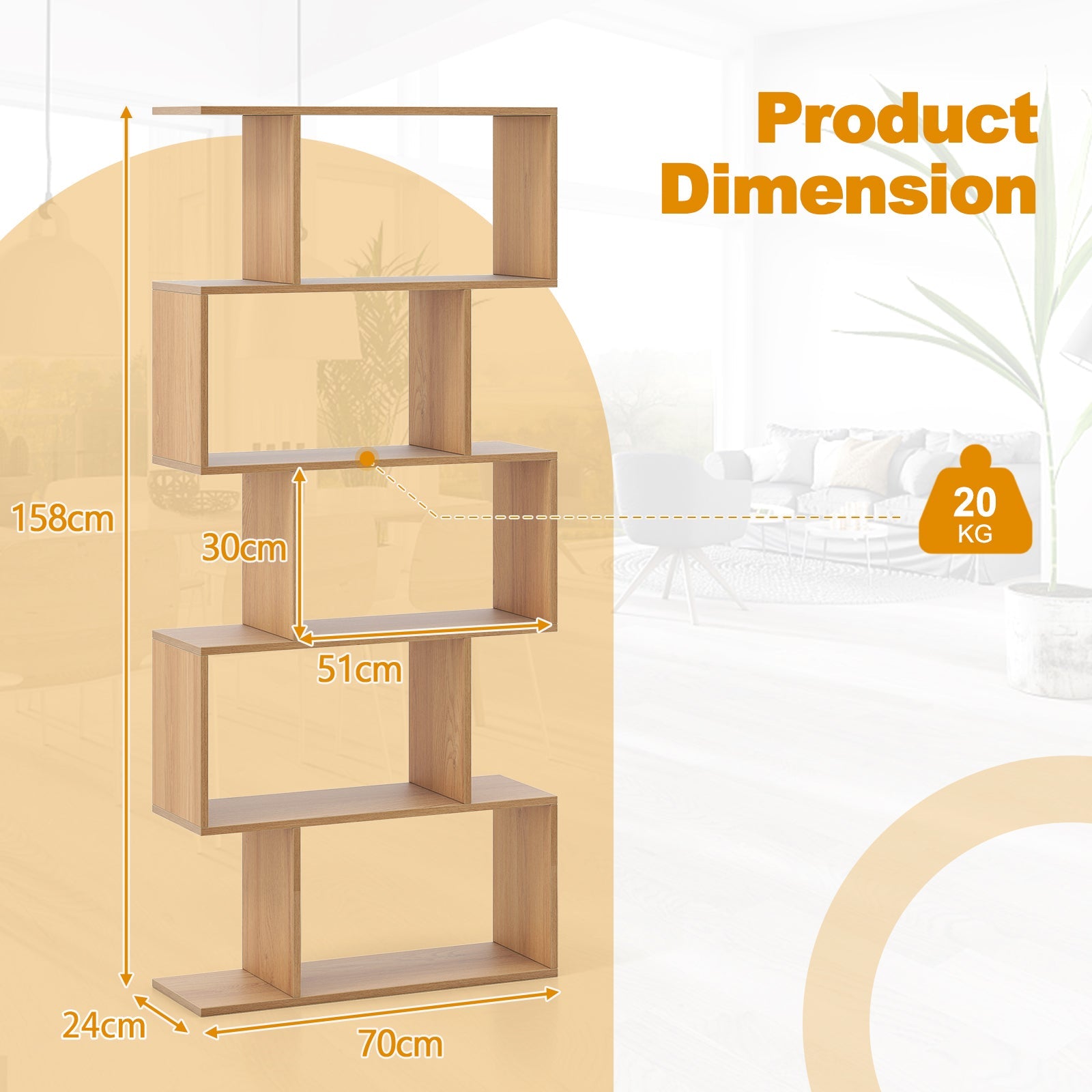 Geometric S-Shaped Bookcase with Anti-Toppling Device for Living Room Home Office-Natural