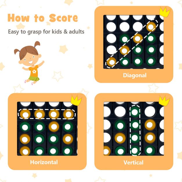 Compared to other traditional 4-to-score game sets, this 4-to-score giant game set comes with a more immersive experience. It keeps everyone entertained for hours, perfect for both adults and kids. Made of premium PP and PE material, it features a long lifespan and better toughness. For kids, high-quality material is safe and nontoxic for long-time use. Plus, it assists children in ability development. By aligning four pieces in a row and blocking the opponent's pieces, children effectively enhance cognitive ability, hand-eye cooperation, logical thinking and more. Additionally, it's of great ease to assemble the set within minutes without any tool. With a weight of 10lb, it's convenient to carry out for outdoor use. Surely, it fits in exactly with your wishes. If you are looking for a game set like this, do not hesitate to place an order! 3-in-1 Design for Endless Fun: A smart combination of connecting 4 games, basketball games and ring toss definitely offers more fun. Three different games serve to keep everyone entertained for long hours. With only one game set, everyone can be immersed in their favorite games and enjoy a completely different playing experience. (Basketball and rings are included.) Easy Assembly and Convenient to Carry: This jumbo four in a row game can easily be set up or taken apart to take to your next party. You can do all the assembly in just a few minutes without using any tool. In addition, made of high-quality plastic materials, the whole game set only weighs 5kg, lightweight to carry out for outdoor use. Fun for Everyone Everywhere: Just have a blast with this 4-to-Score game set at home, backyard, birthday or holiday parties, weddings, friend gatherings and more. It's perfect for users of all ages as well as indoor and outdoor use. Thanks to that, family game nights can be more exciting and enjoyable. Premium Materials and High Durability: The materials used in this giant 4-in-a-row game set are carefully selected, so there are no safety risks. Premium PE and PP materials are very durable and can provide you with long service life. And the edges are very smooth to ensure that the player will not be scratched during the game. Perfect Gift for Kids: This colorful giant game toy is the perfect gift for children. Whether it's a holiday or birthday, this 4-in-a-row game set is always a surprise and will keep them entertained for hours. The rules are very simple and children can learn them quickly. Besides, through this game, children's motor skills, hand-eye coordination and cognitive skills can be greatly improved.