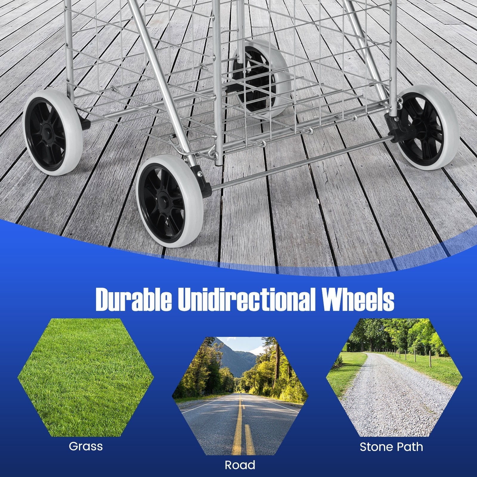 Heavy Duty Folding Shopping Cart with 83L Metal Basket-Silver