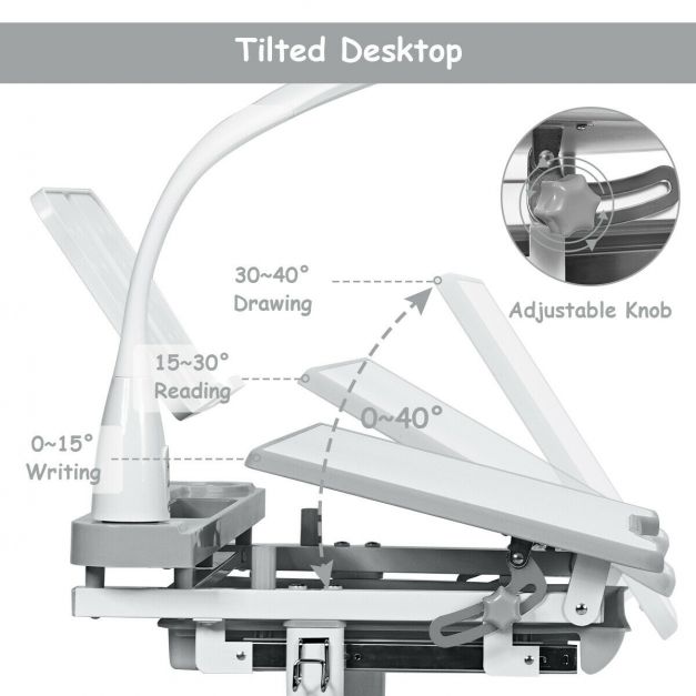 Height Adjustable Kids Study Desk Table Chair Set with Lamp-Grey