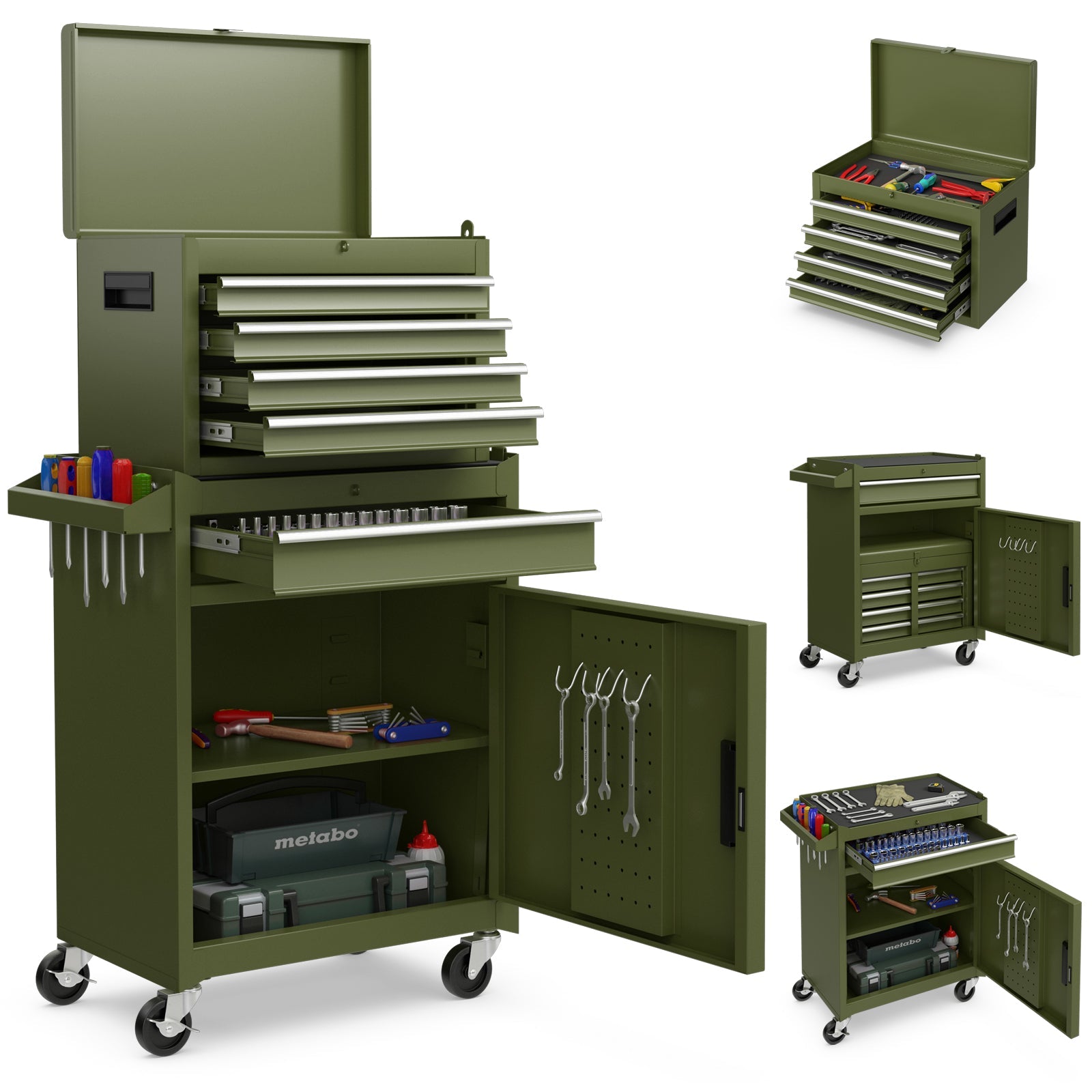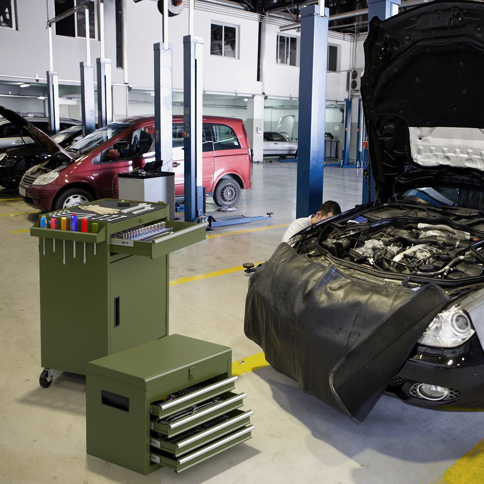 High Capacity Tool Storage Cabinet with Lockable Wheels-Dark Green