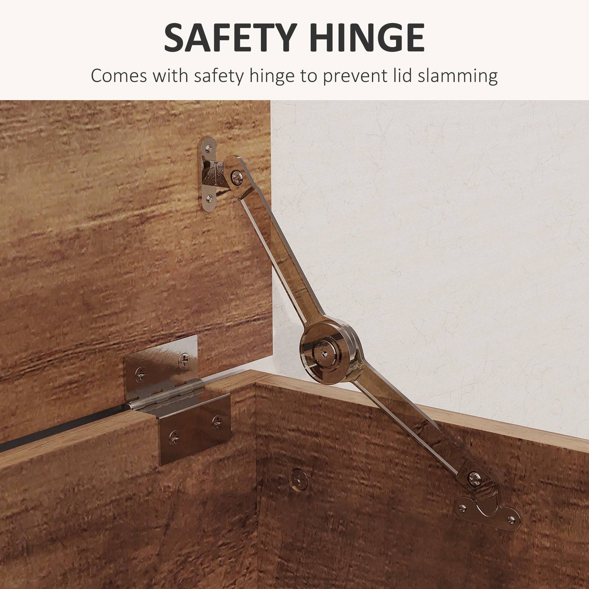 HOMCOM 113L Storage Chest, Storage Box with Flip-Top Lid and 2 Safety Hinges, Storage Trunk for Living Room, Entryway, 100 x 40 x 40 cm, Brown Wood Grain