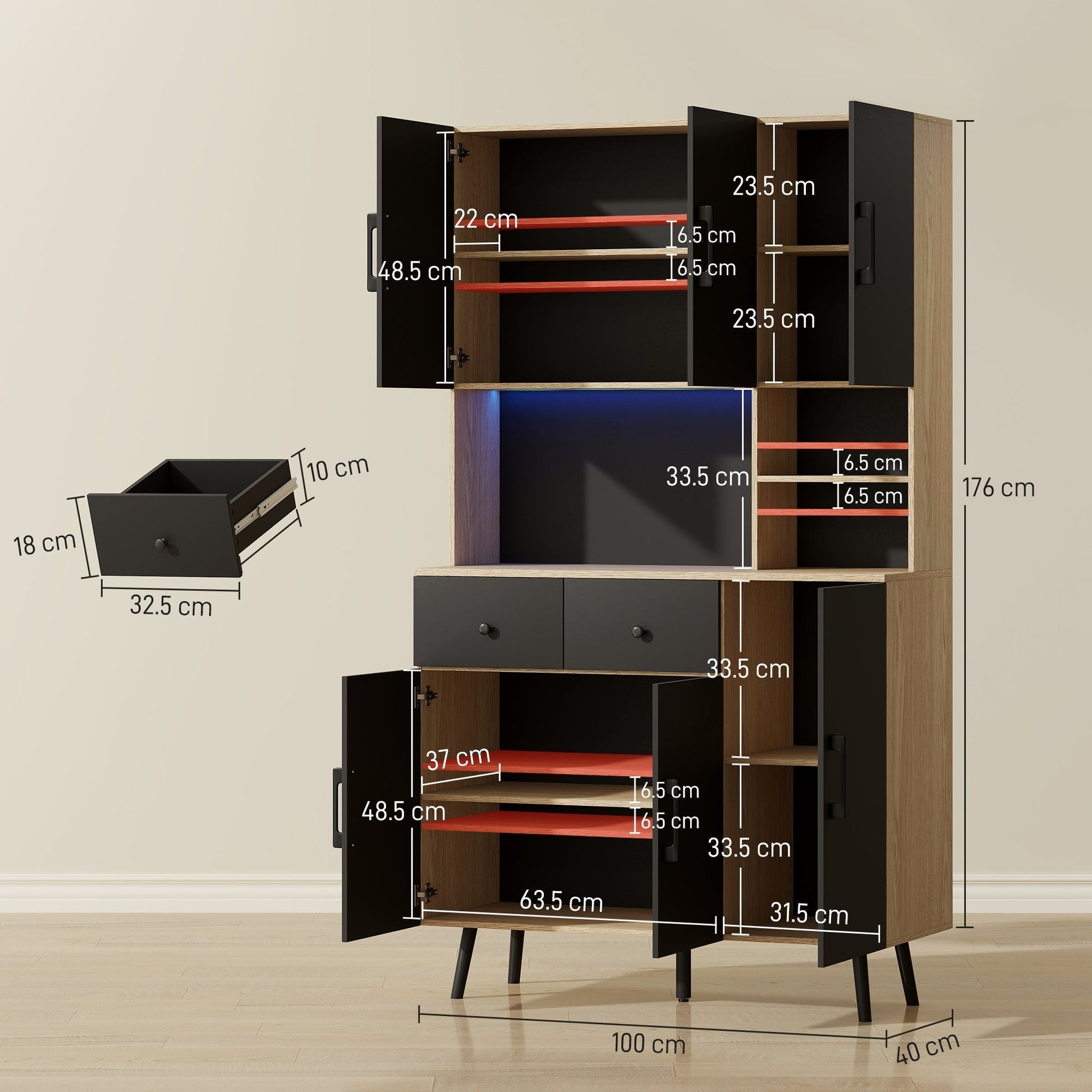 HOMCOM 176 cm Kitchen Cupboard with LED Lights - Oak and Black
