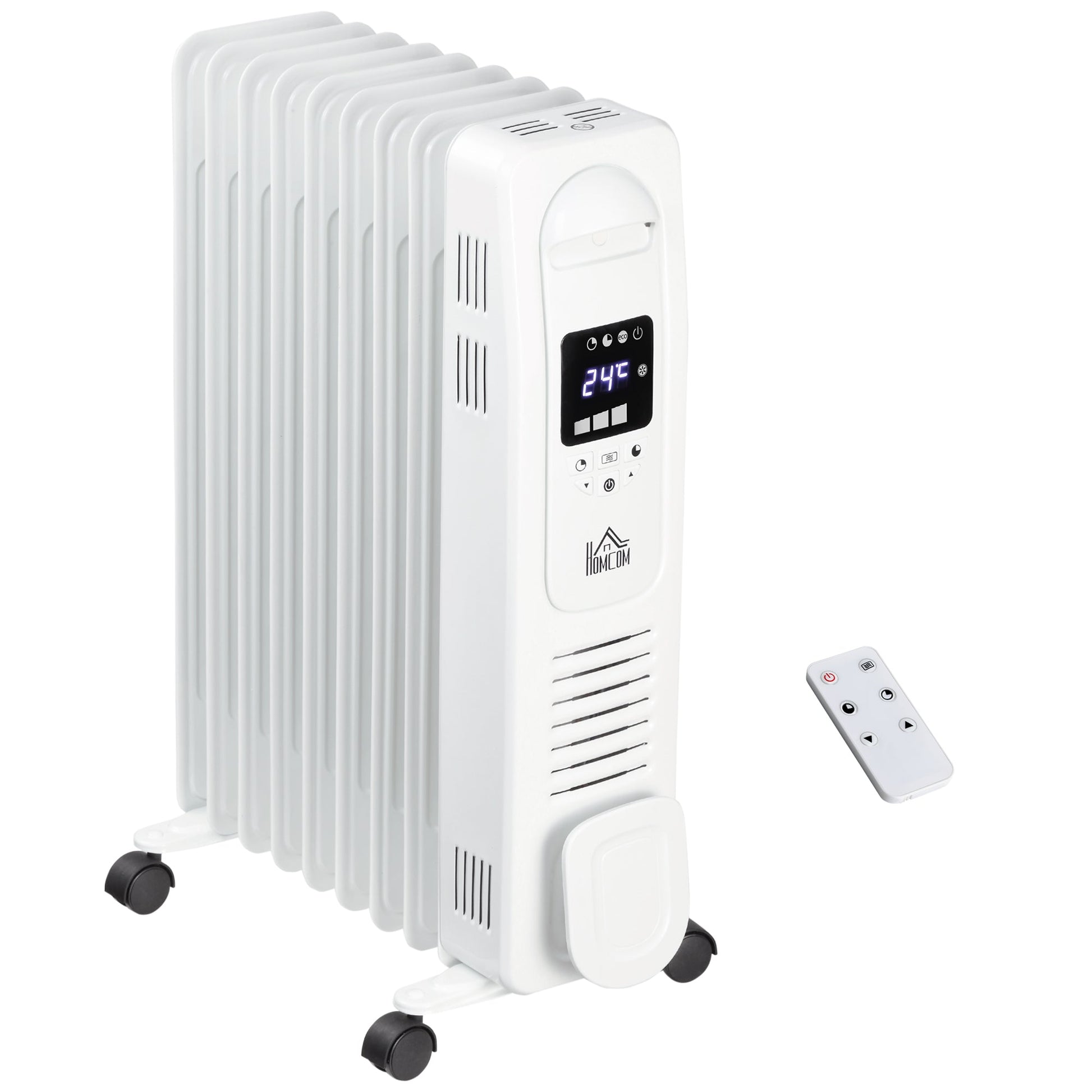 HOMCOM 2000W Digital Oil Filled Radiator, 9 Fin, Portable Electric Heater with LED Display, Timer, 3 Heat Settings, Safety Cut-Off and Remote Control, White