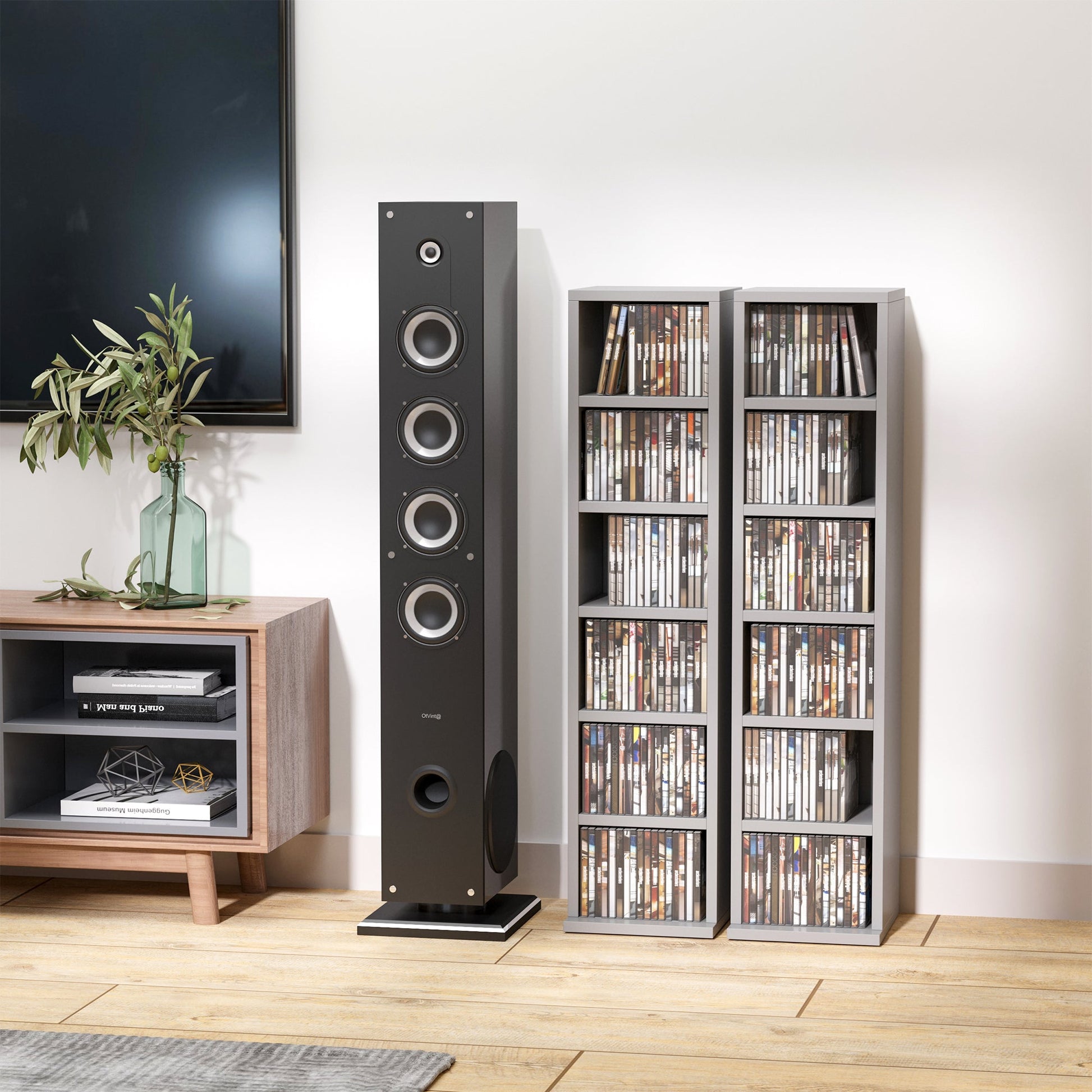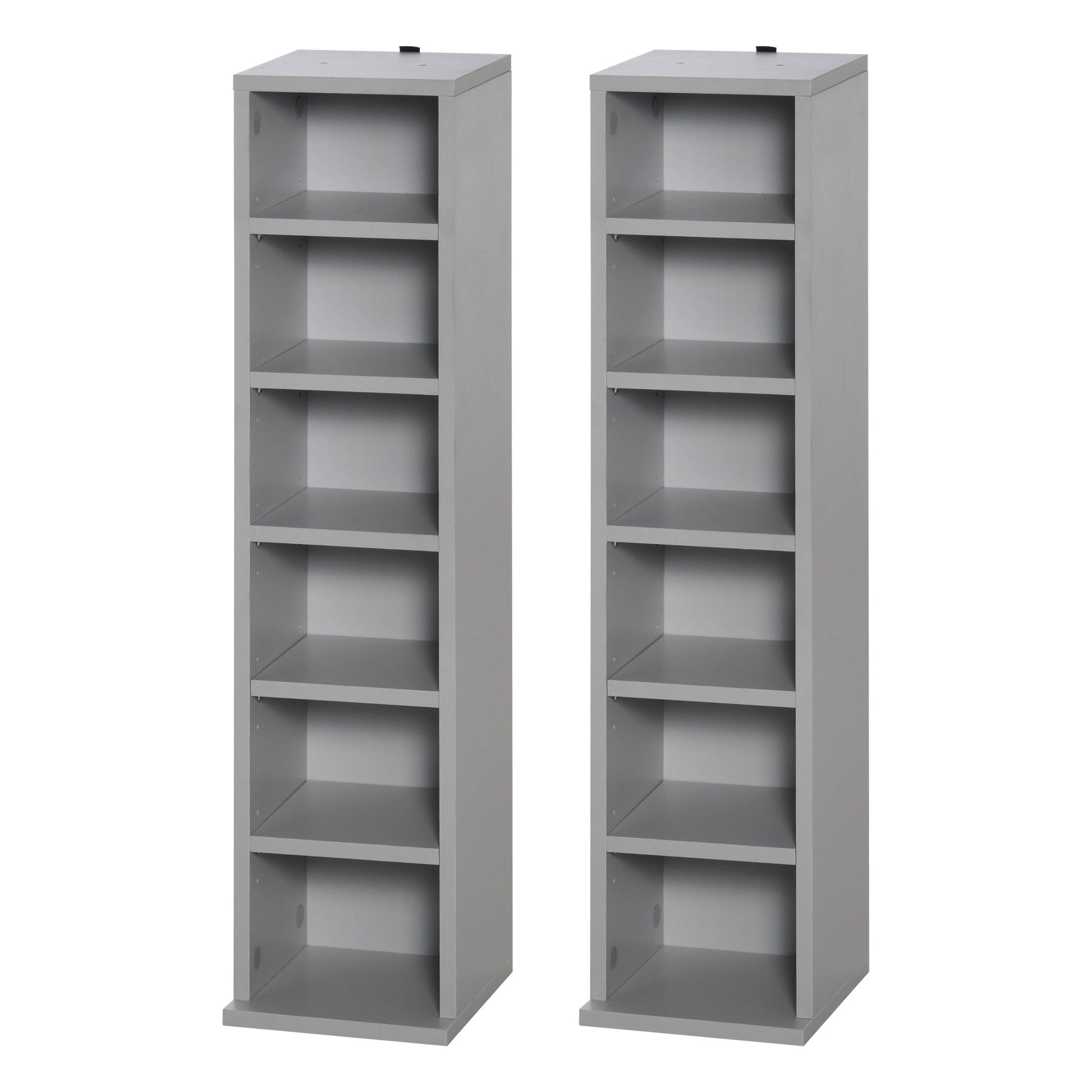 HOMCOM 204 CD Media Display Shelf Unit Set of 2 Blu-Ray Tower Rack w/ Adjustable Shelves Bookcase Storage Organiser, Grey