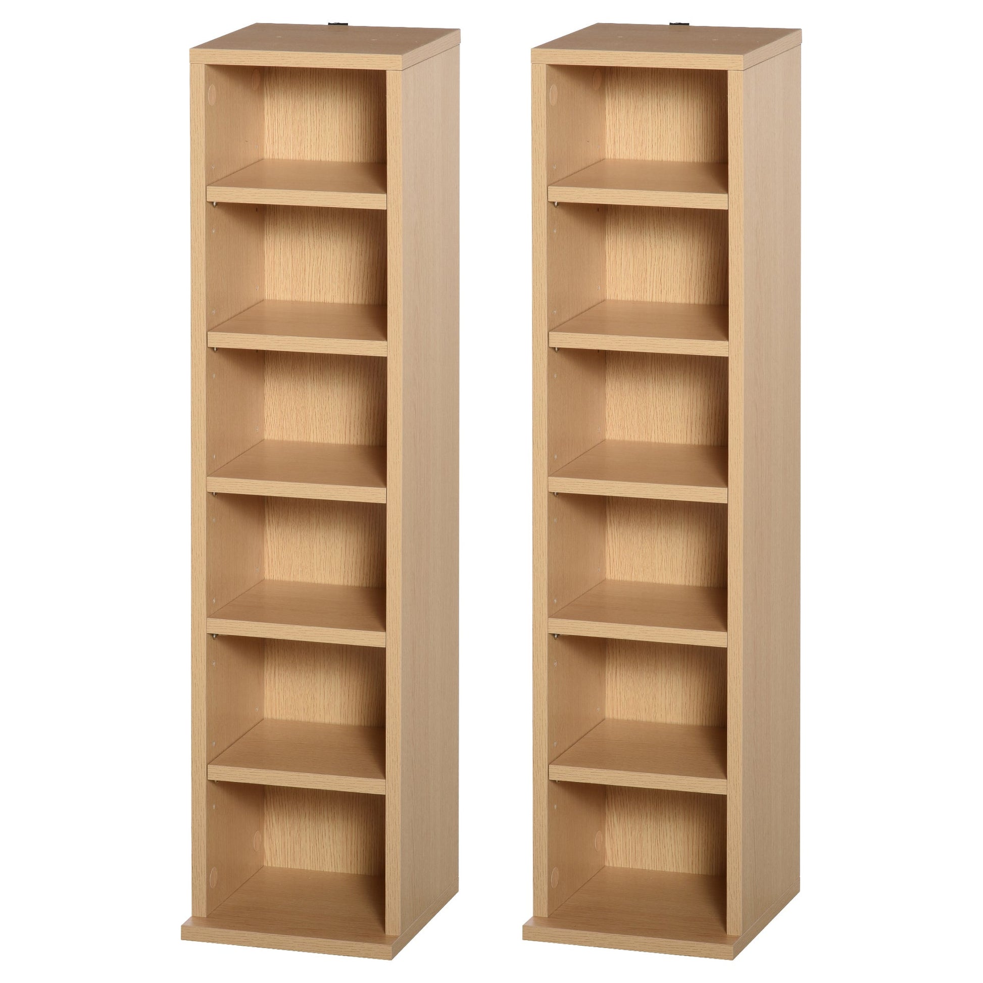 HOMCOM 204 CD Media Display Shelf Unit Set of 2 Blu-Ray Tower Rack w/ Adjustable Shelves Bookcase Storage Organiser, Natural Wood Colour