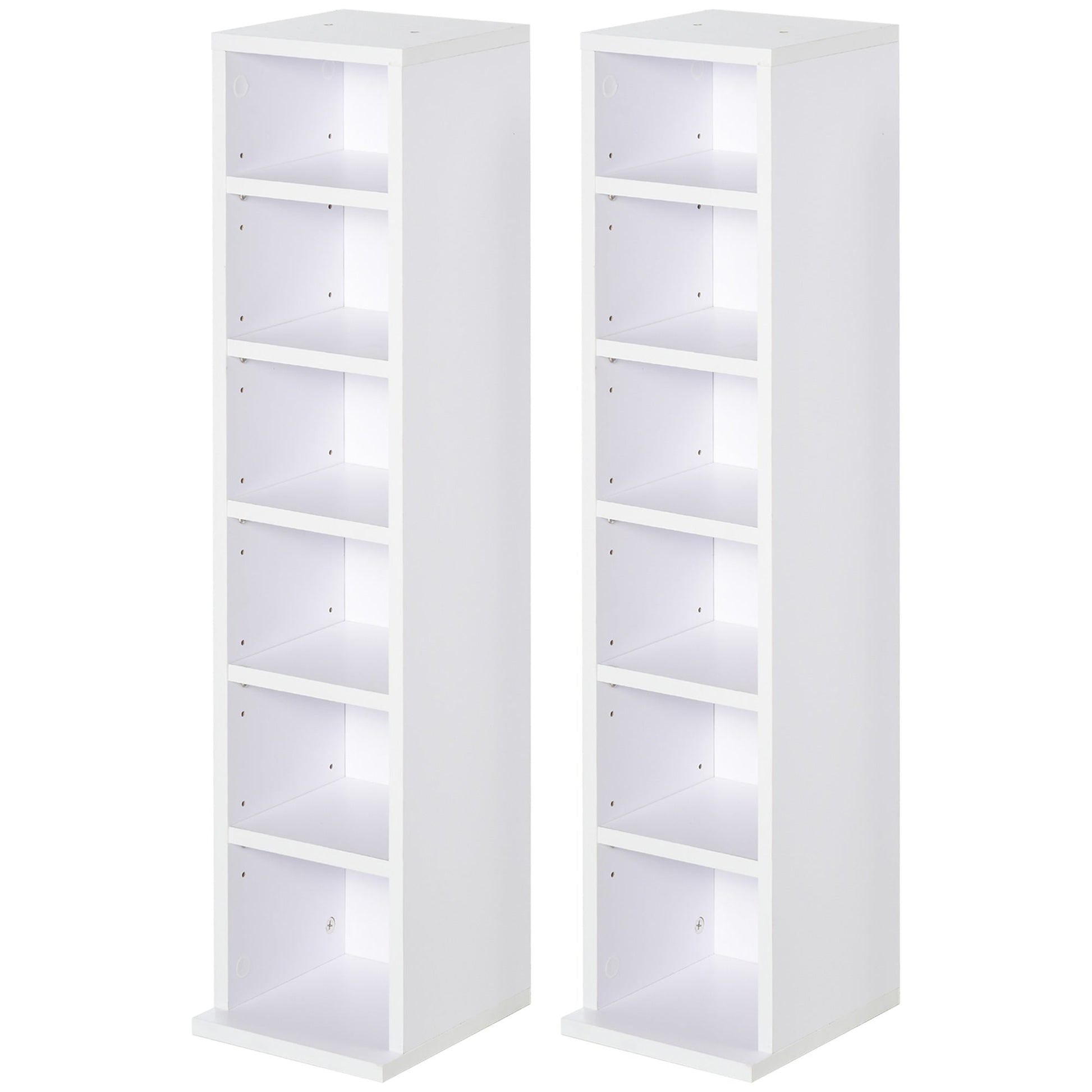 HOMCOM 204 CD Media Display Shelf Unit Set of 2 Blu-Ray Tower Rack w/ Adjustable Shelves Bookcase Storage Organiser, White