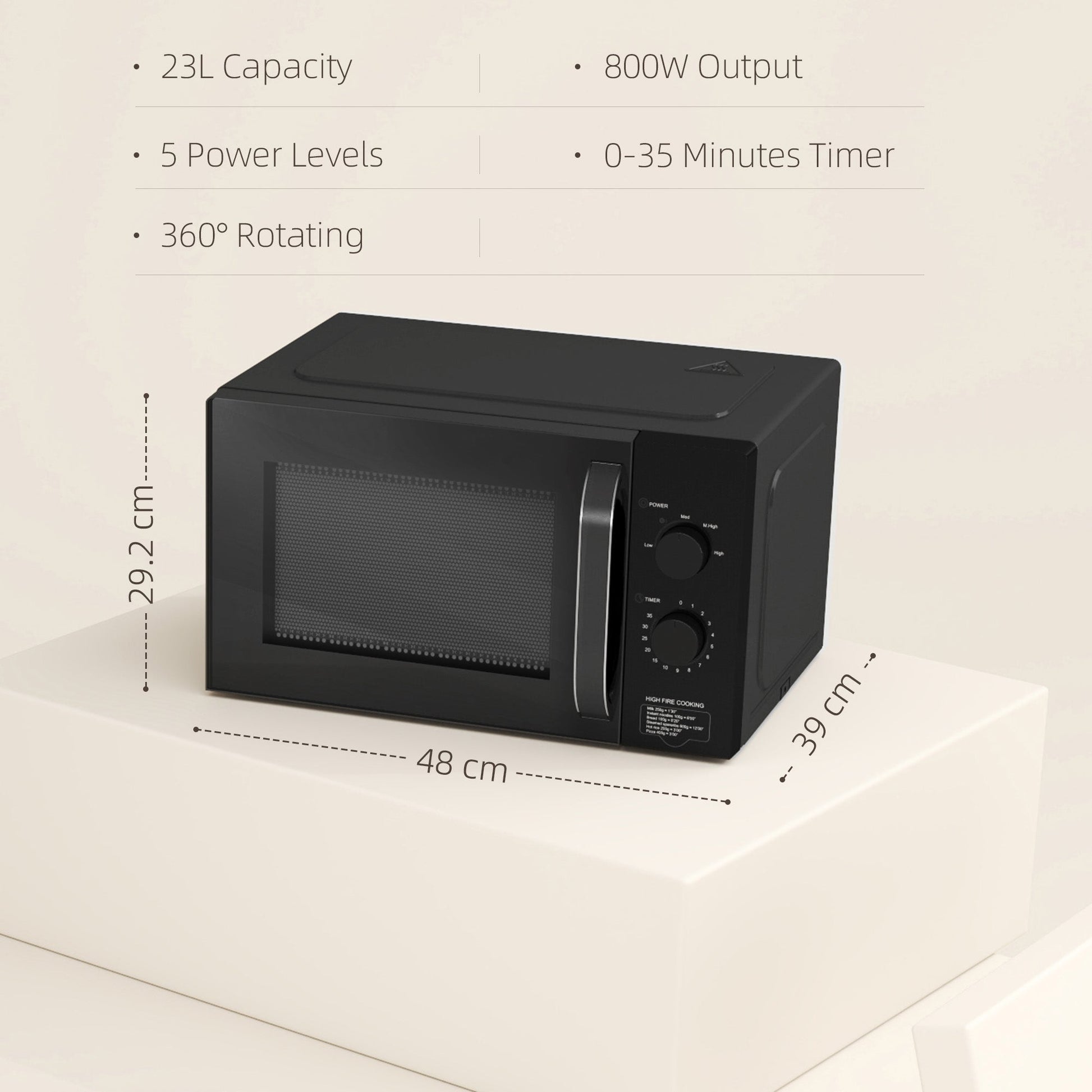 HOMCOM 23L 800W Microwave Oven, Solo Manual Microwave with 5 Power Levels, Defrost, 35 Minutes Timer, Clock, Easy Clean, Small Black Microwave