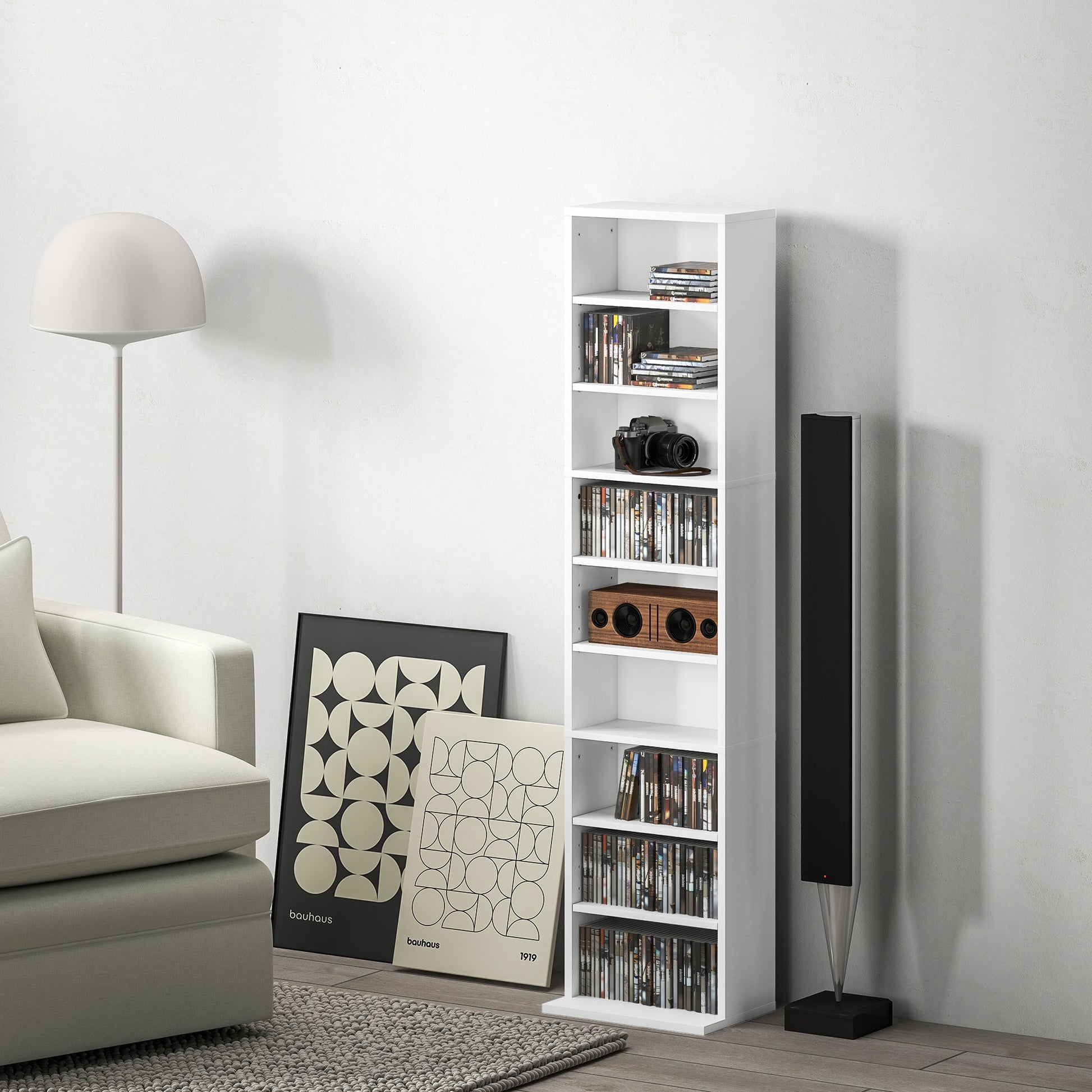 An easy and simple solution for keeping media stored, in the home and beyond - this HOMCOM storage unit. It holds up to 260 CDs, or 120 DVDs, with six adjustable shelves for customisable storage. The CD shelf is made from tough particle board with a smooth melamine coating, complete with anti-tipping straps included to secure to a wall.