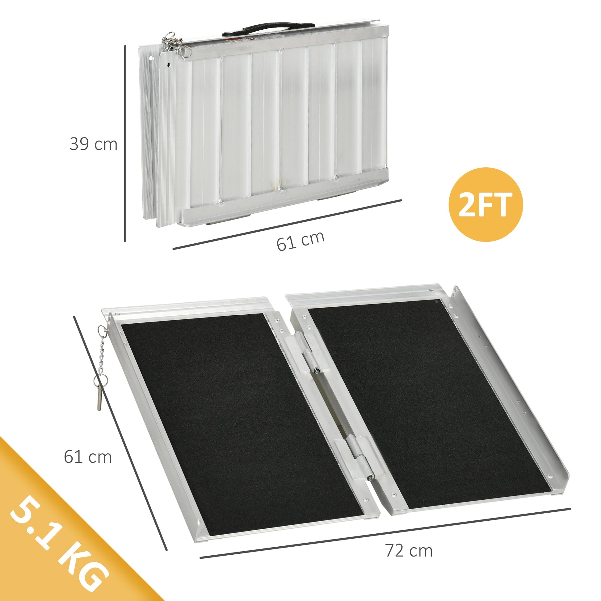 HOMCOM 2ft Aluminium Duo Wheelchair Ramp Pushchair Mobility Assistance Folding w/ Carry Handle Locking Chain Portable 61L x 72W cm