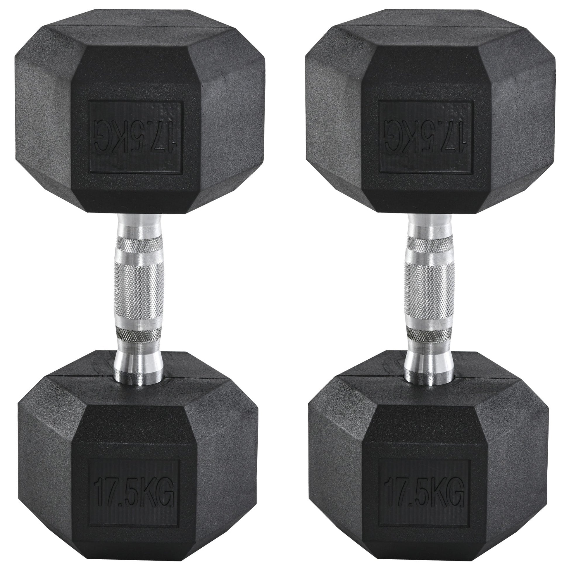 HOMCOM 2x17.5kg Rubber Hex Dumbbell Portable Hand Weights Dumbbell Home Gym Workout Fitness Hand Dumbbell