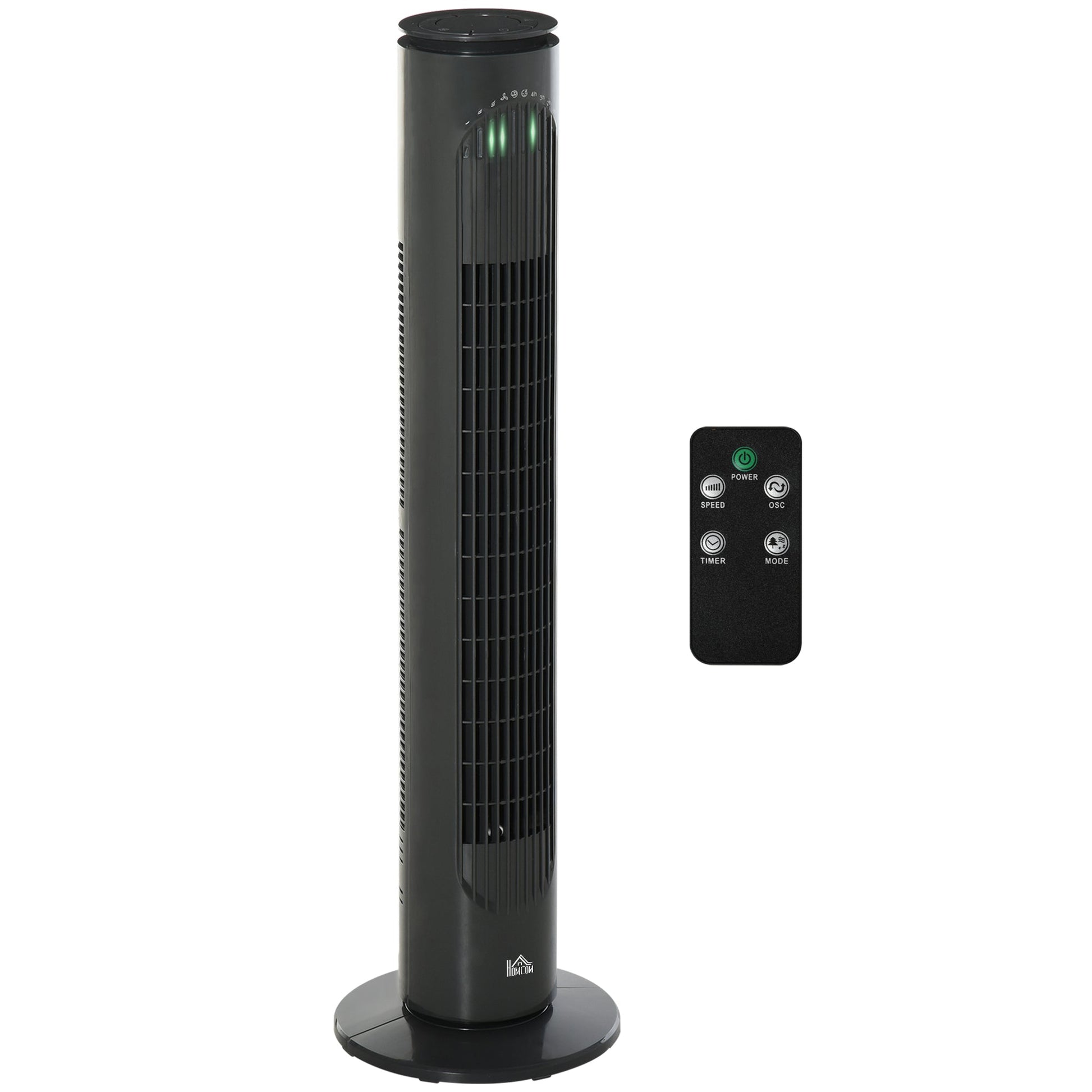 HOMCOM 30'' Freestanding Tower Fan, 3 Speed 3 Mode, 10h Timer, 70 Degree Oscillation, LED Light, 5M Remote Controller, Dark Grey