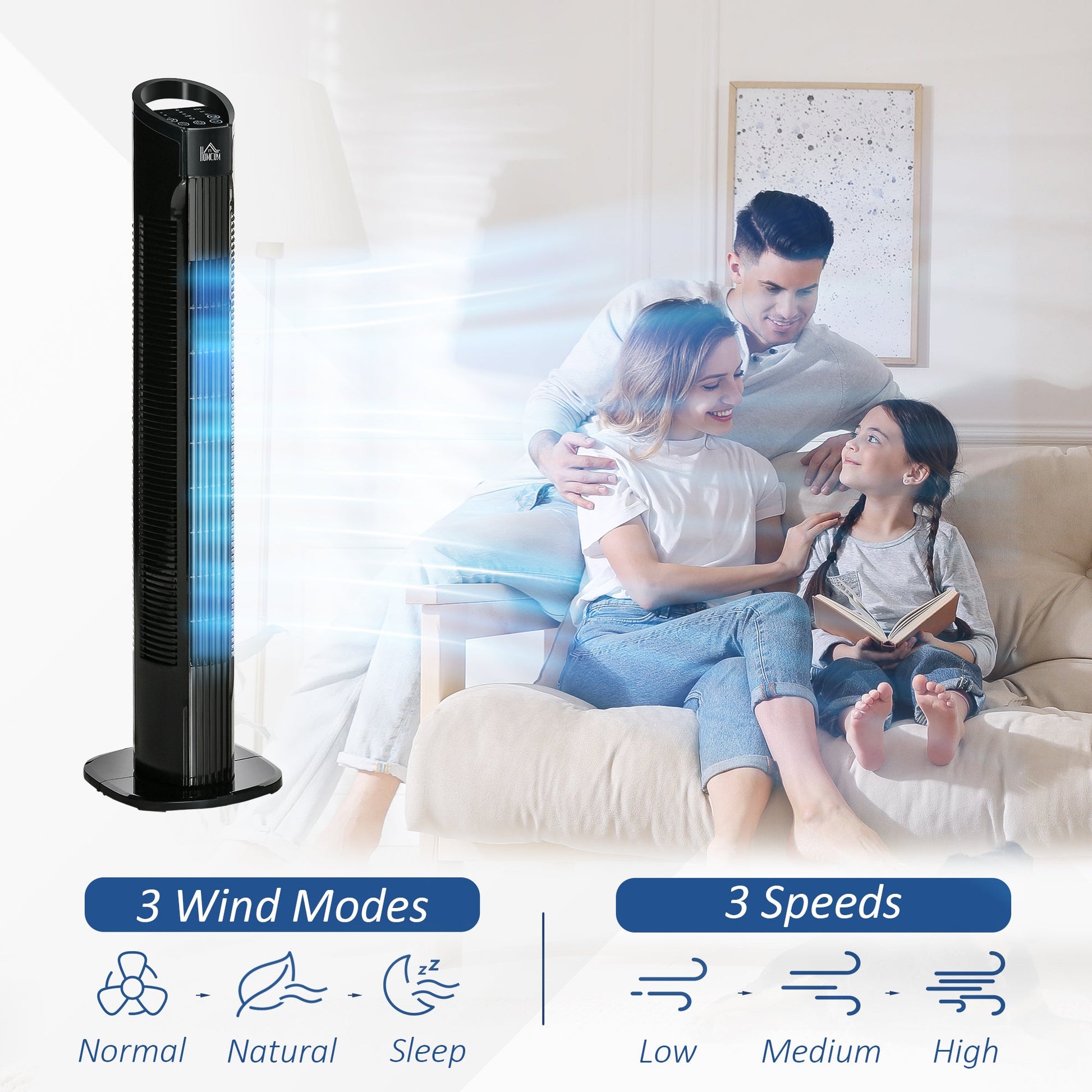 HOMCOM 31" Freestanding Tower Fan, 3 Speed 3 Mode, 7.5H Timer, Oscillating, LED Panel, Remote Control, 31 Inch Standing Fan, Black