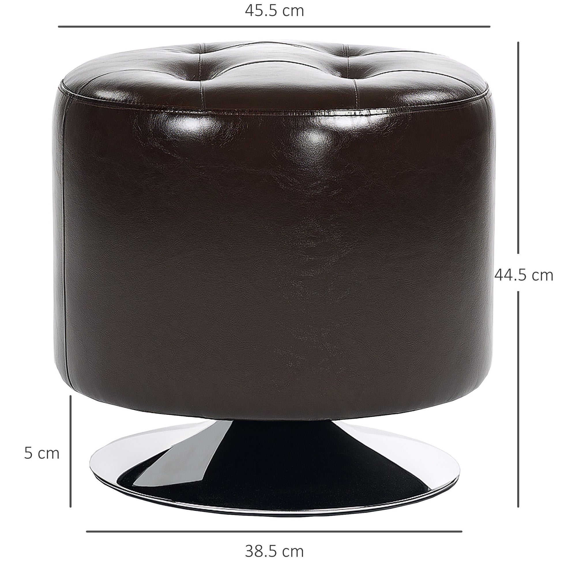 HOMCOM 360 Swivel Foot Stool Round PU Footstool with Thick Sponge Padding and Solid Steel Base, Brown