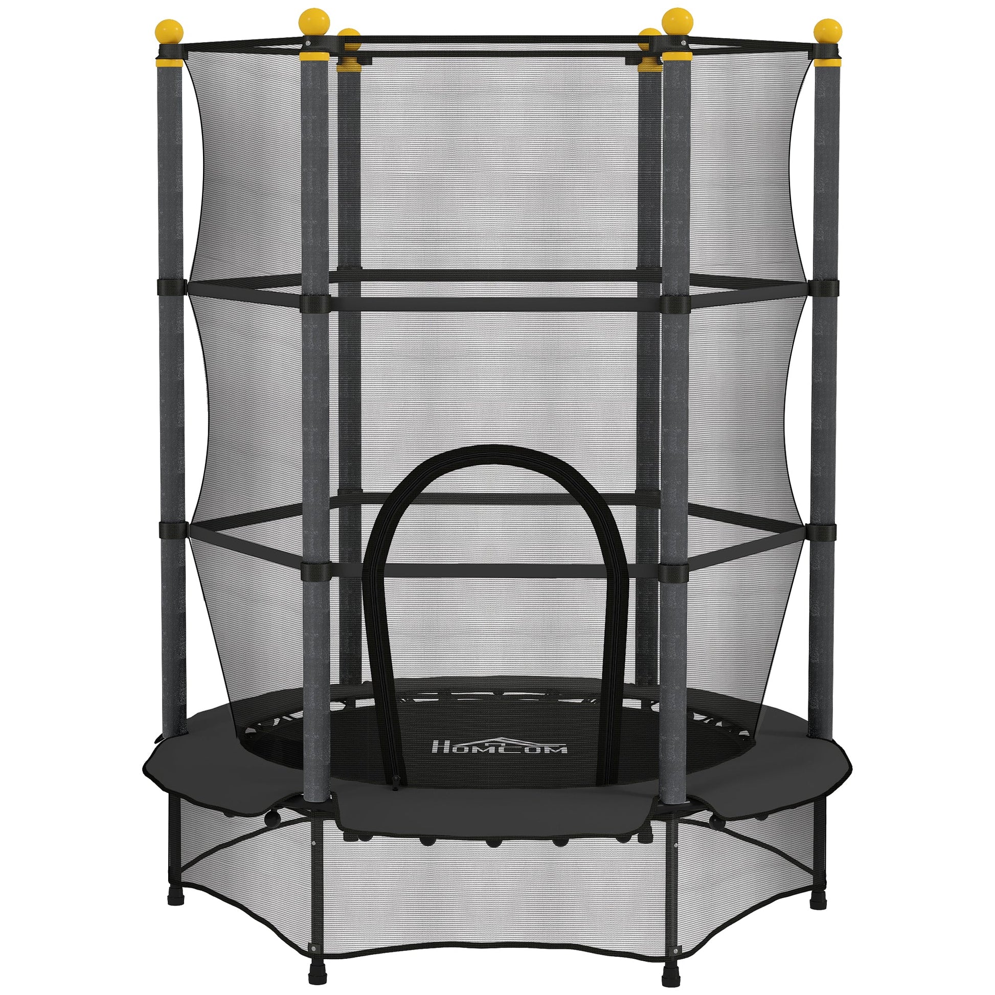 HOMCOM 4.6FT/55" Kids Trampoline with Safety Enclosure, Outdoor Indoor Use, for Ages 3-10 Years, Black