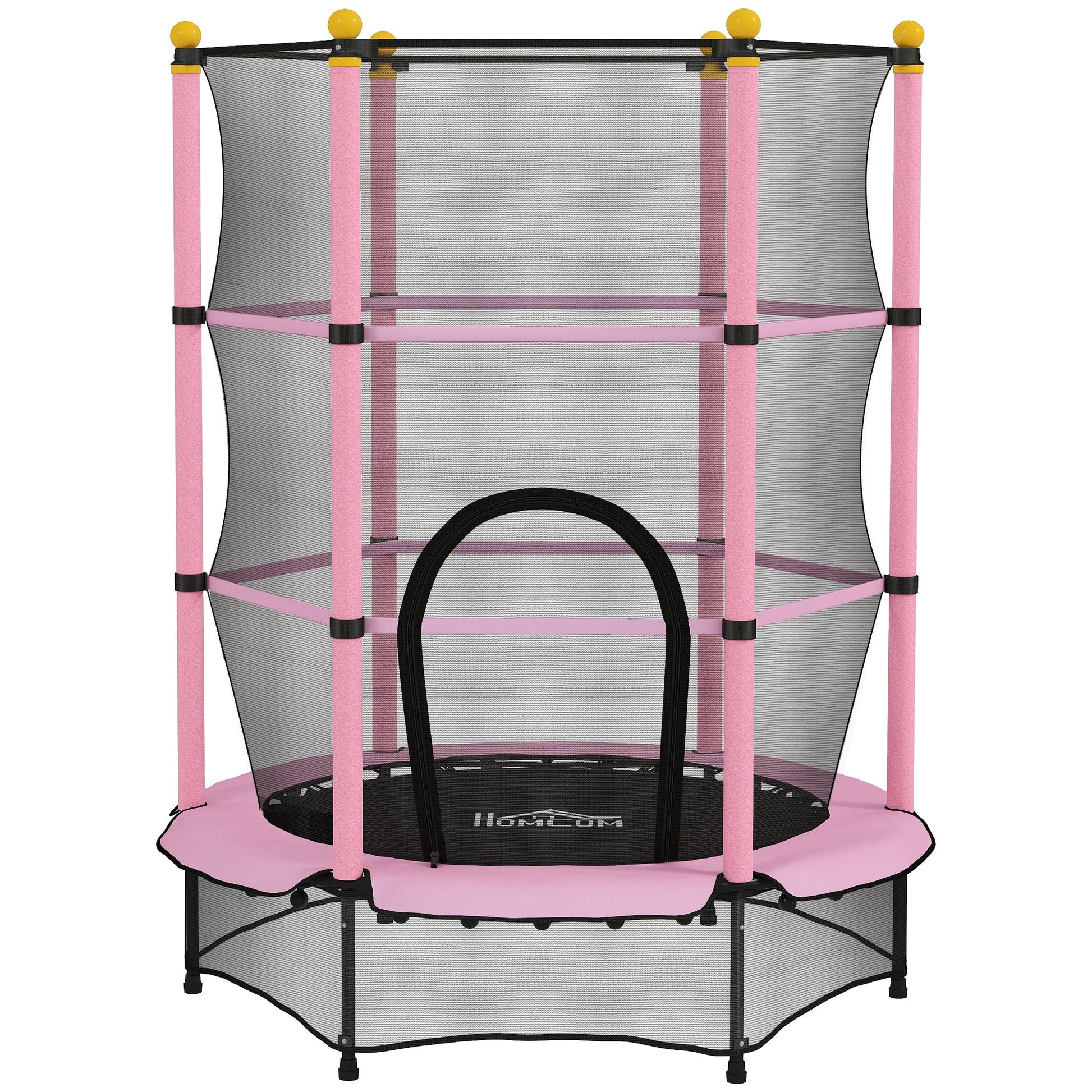 HOMCOM 4.6FT/55" Kids Trampoline with Safety Enclosure, Outdoor Indoor Use, for Ages 3-10 Years, Pink