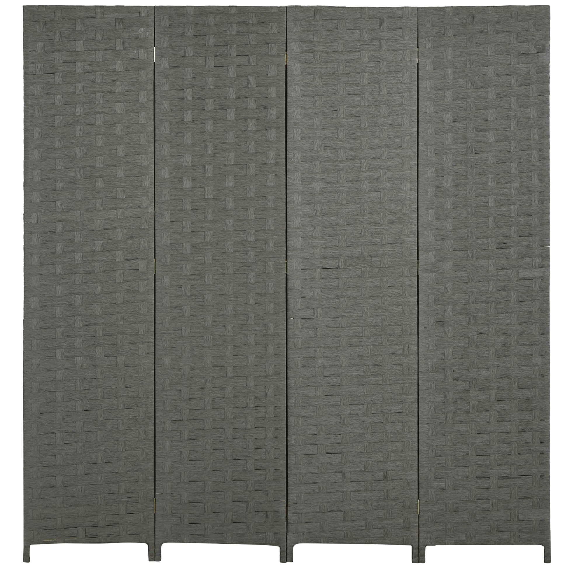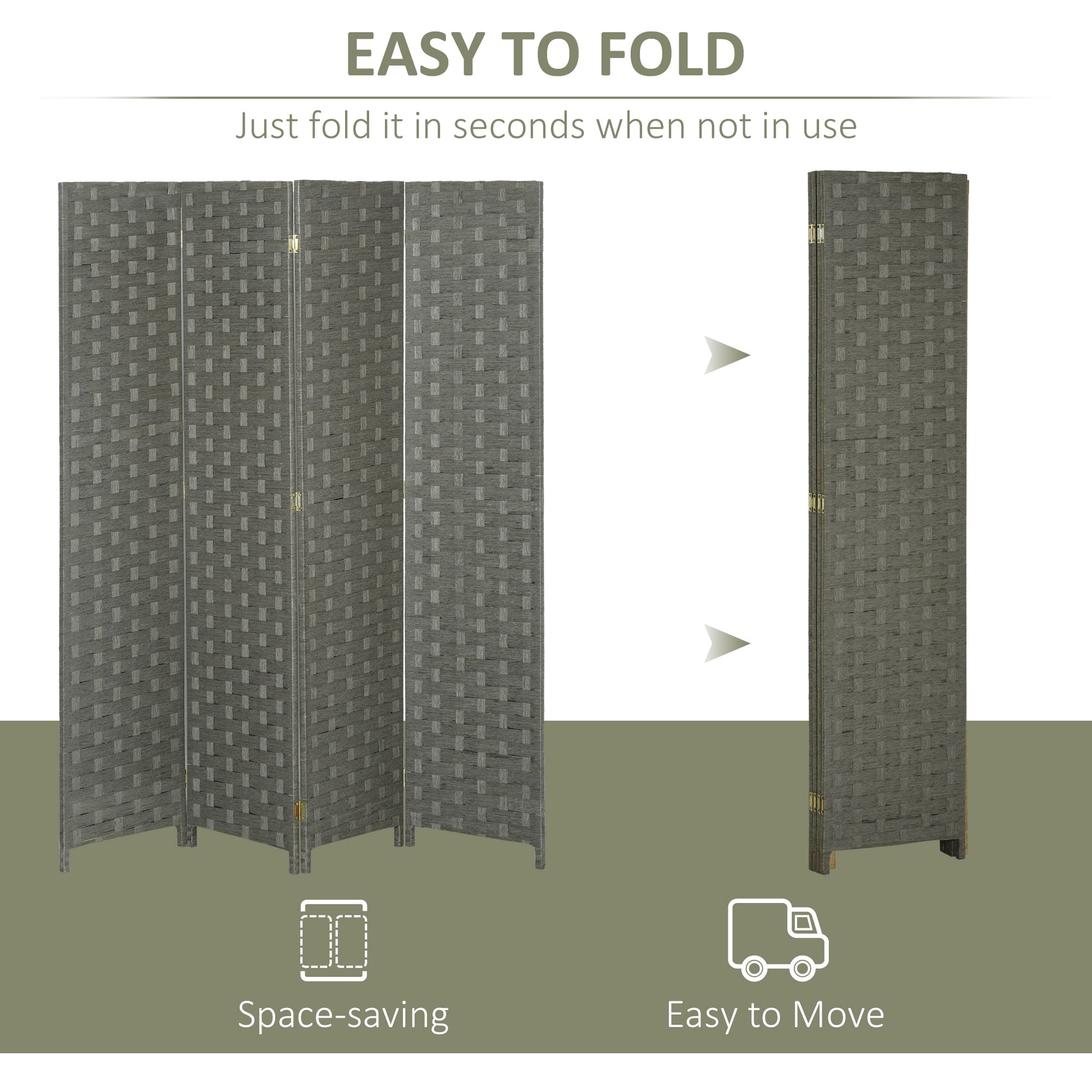 HOMCOM 4-Panel Room Dividers, Wave Fibre Freestanding Folding Privacy Screen Panels, Partition Wall Divider for Indoor Bedroom Office, 170Â cm, Grey
