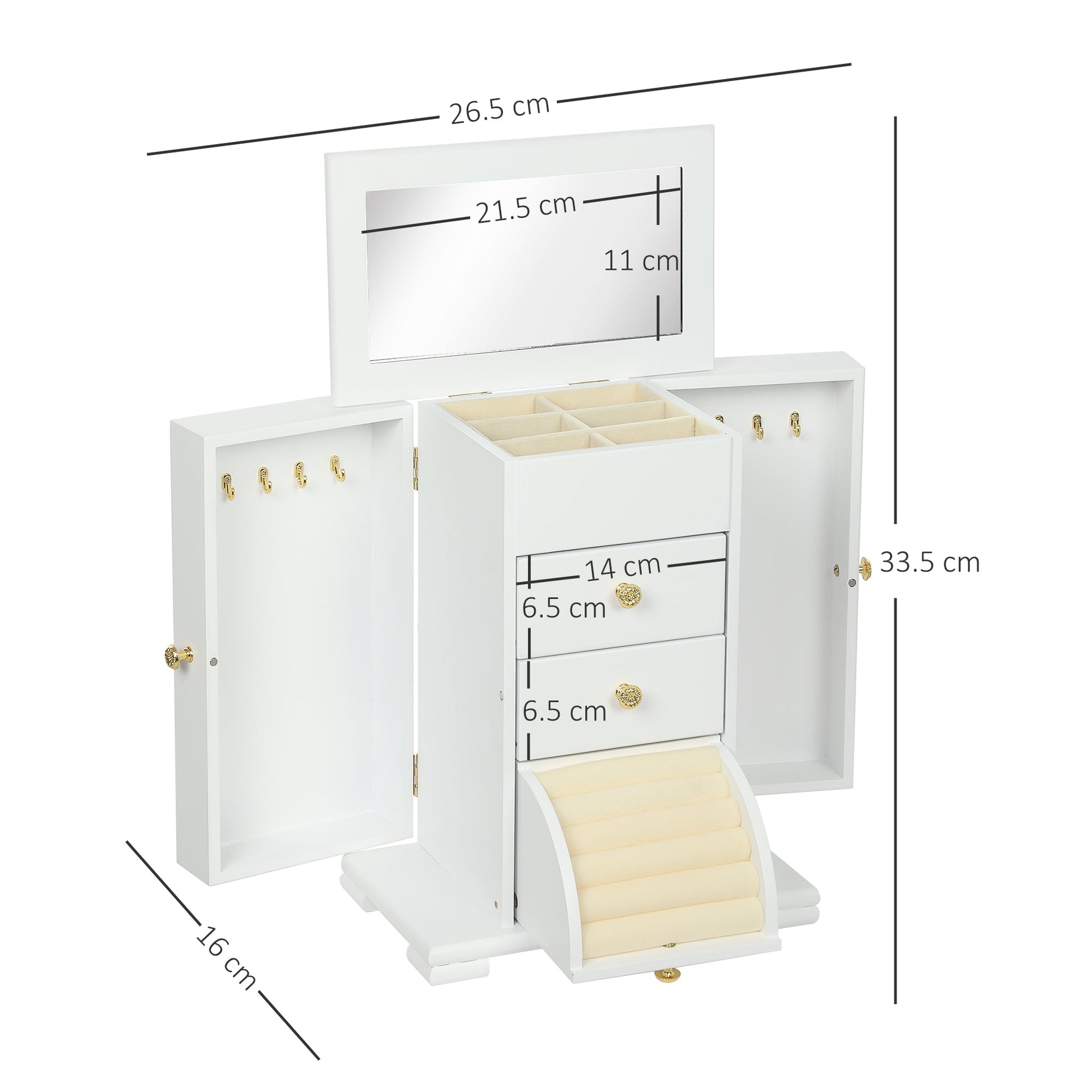 HOMCOM 4-Tier Jewellery Box with Mirror and 2 Drawers - White