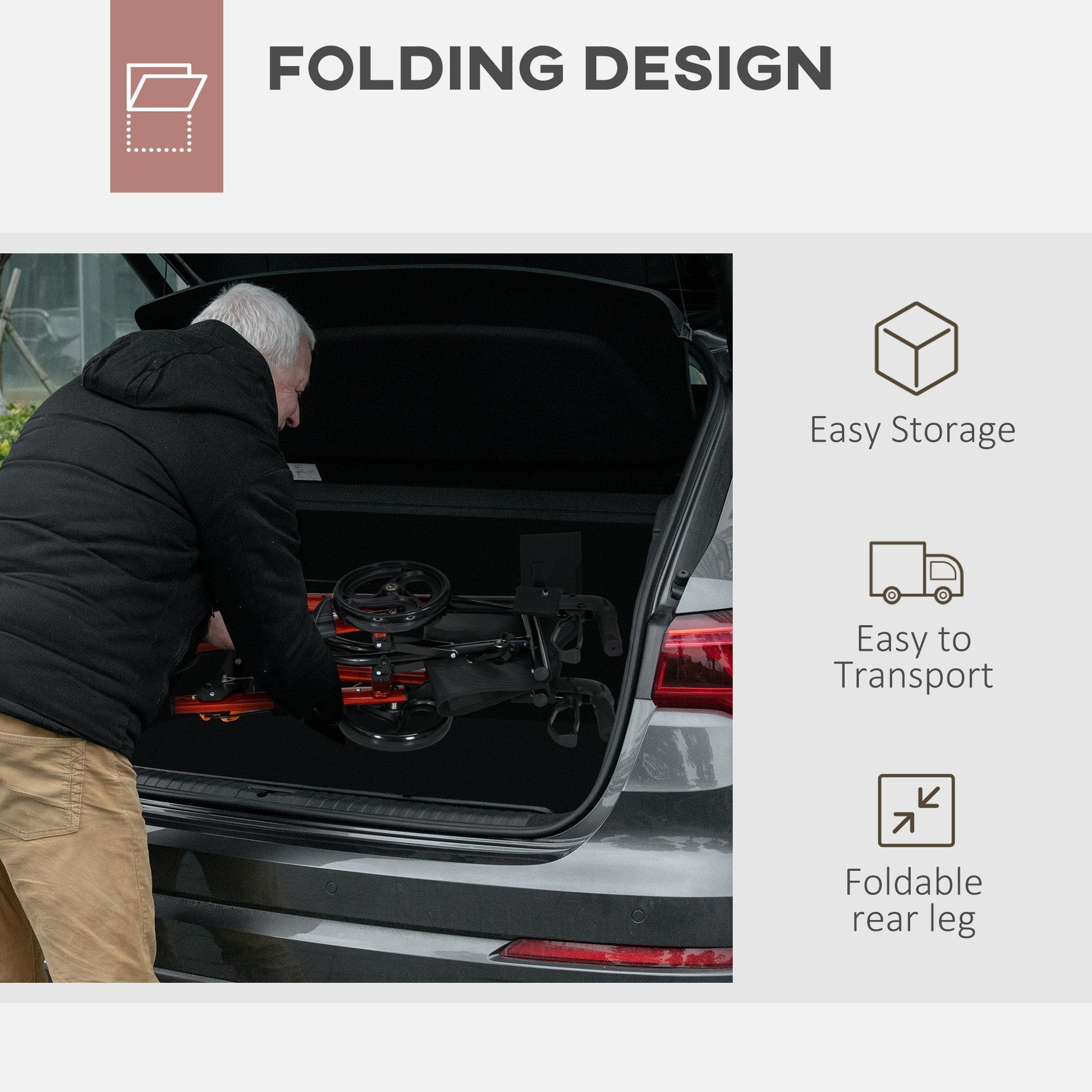 مشاية هومكوم رباعية العجلات مع مقعد وظهر، مشاية متحركة قابلة للطي مع حقيبة حمل، ارتفاع قابل للتعديل، فرامل مزدوجة، حامل عصا، إطار مشي خفيف الوزن من الألومنيوم لكبار السن والمعاقين، أحمر