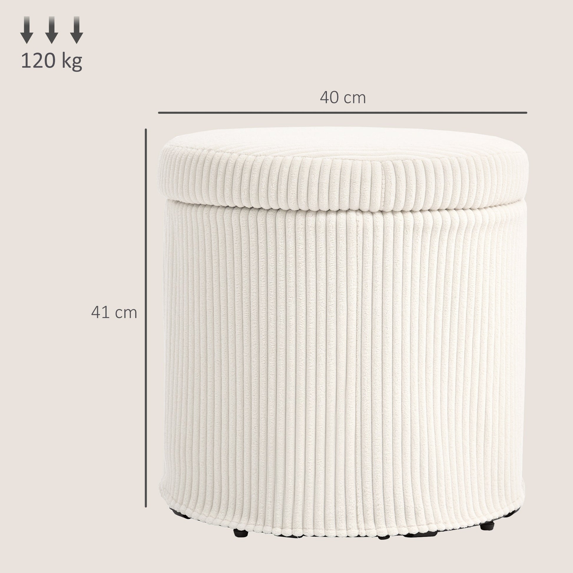 HOMCOM 40cm Round Storage Ottoman, Corduroy Footstool with Removable Lid and Legs, Vanity Stool for Living Room, Bedroom, Beige
